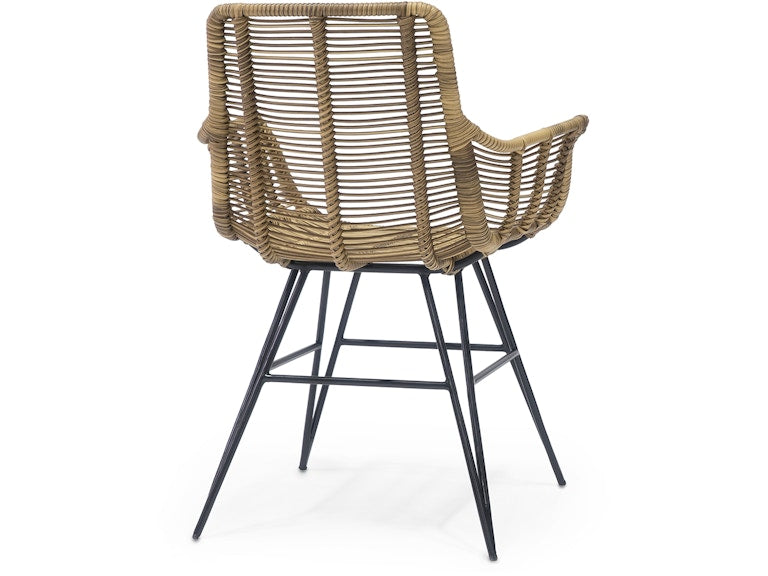 The Manhattan Outdoor Arm Chair blends relaxed sophistication with enduring craftsmanship. Featuring a sleek black aluminum frame hand-wrapped in natural brown synthetic wicker, this piece offers texture, contrast, and durability in equal measure. Its airy profile and gently curved arms create an inviting silhouette, perfect for effortless patio, deck, or garden dining. Designed to coordinate seamlessly with the Hermosa Outdoor Collection, it is a timeless essential for elevated outdoor living.