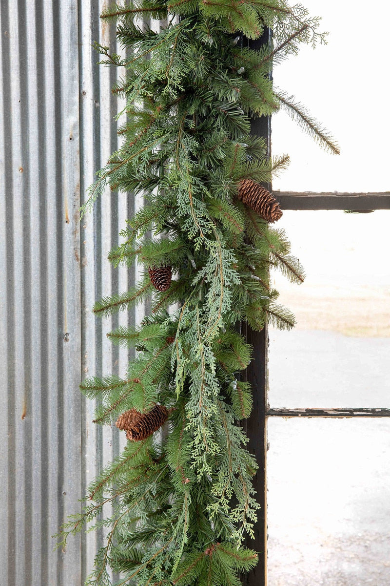 This beautiful 9' faux garland brings the natural charm of evergreens into your home. Designed with a mix of lifelike branches and interwoven LED lights, it adds a warm, festive glow to mantels, banisters, and doorways. A timeless seasonal accent that’s effortless to style and enjoy year after year.