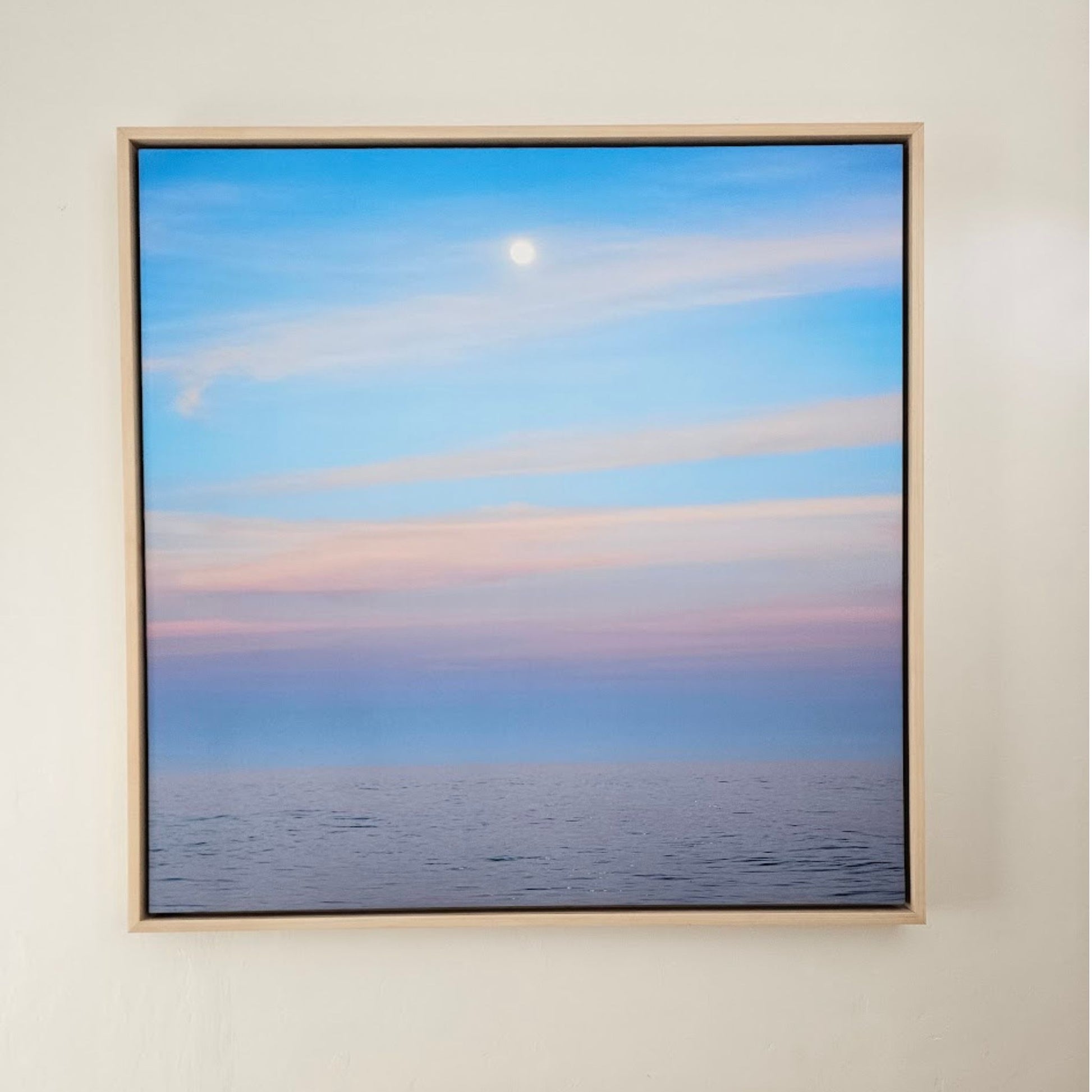 Each piece is made to order (8-12 weeks) and available in custom sizes, with the option to preview it on your wall before purchase. All artwork comes with a custom wood frame.