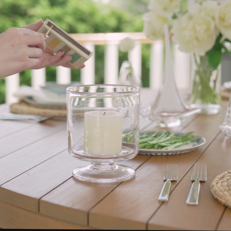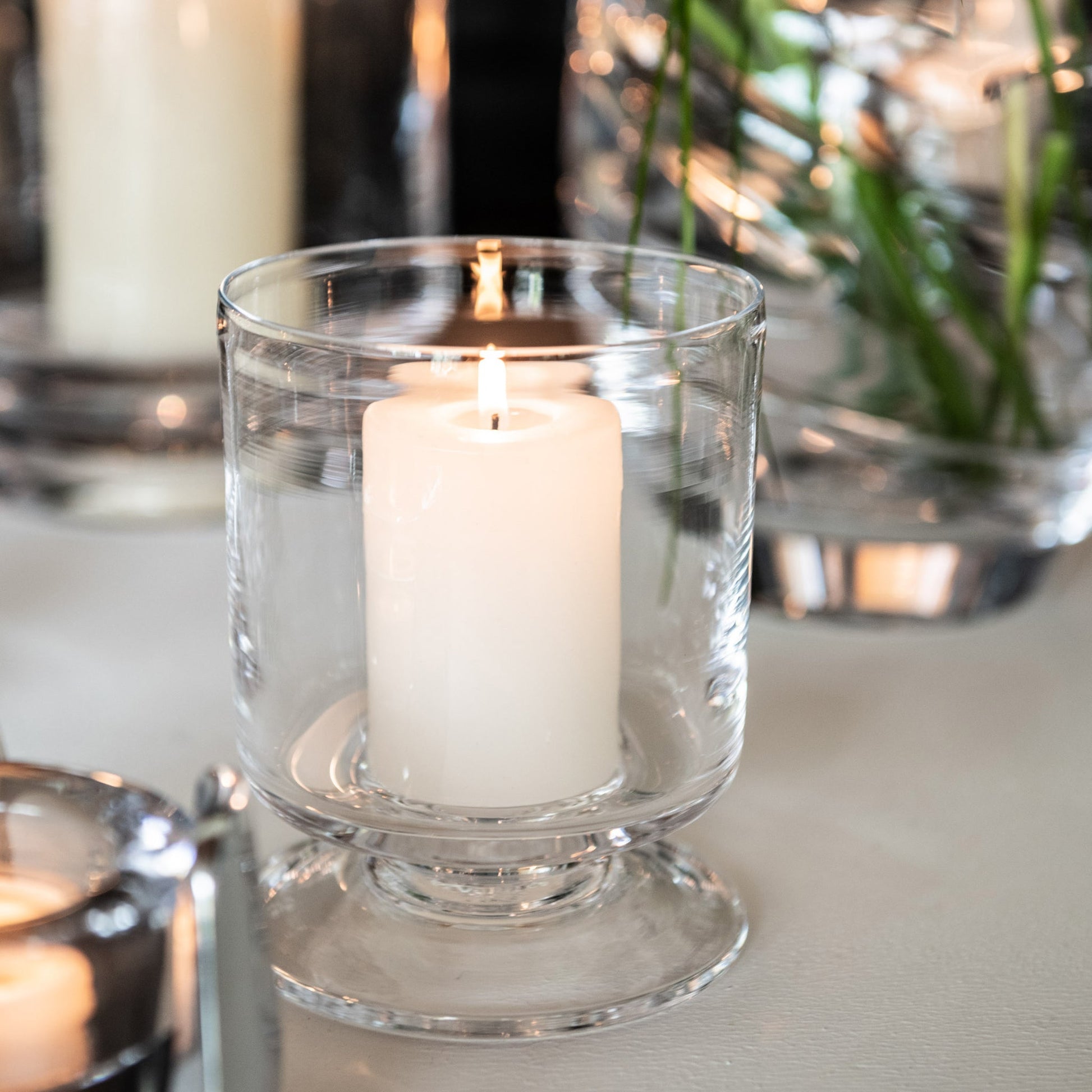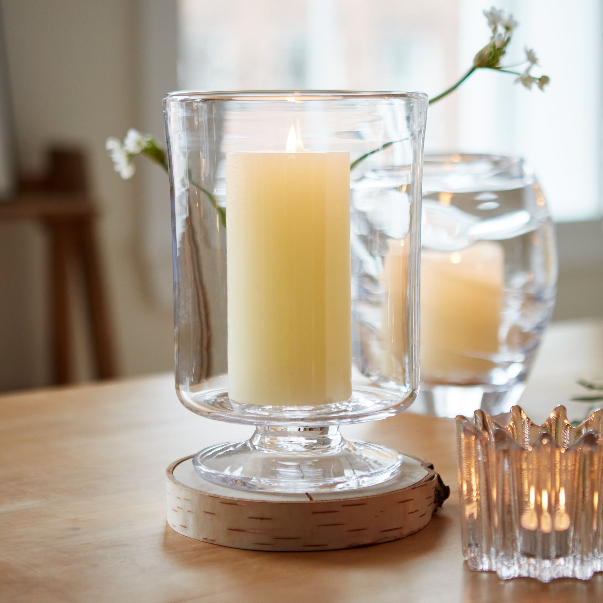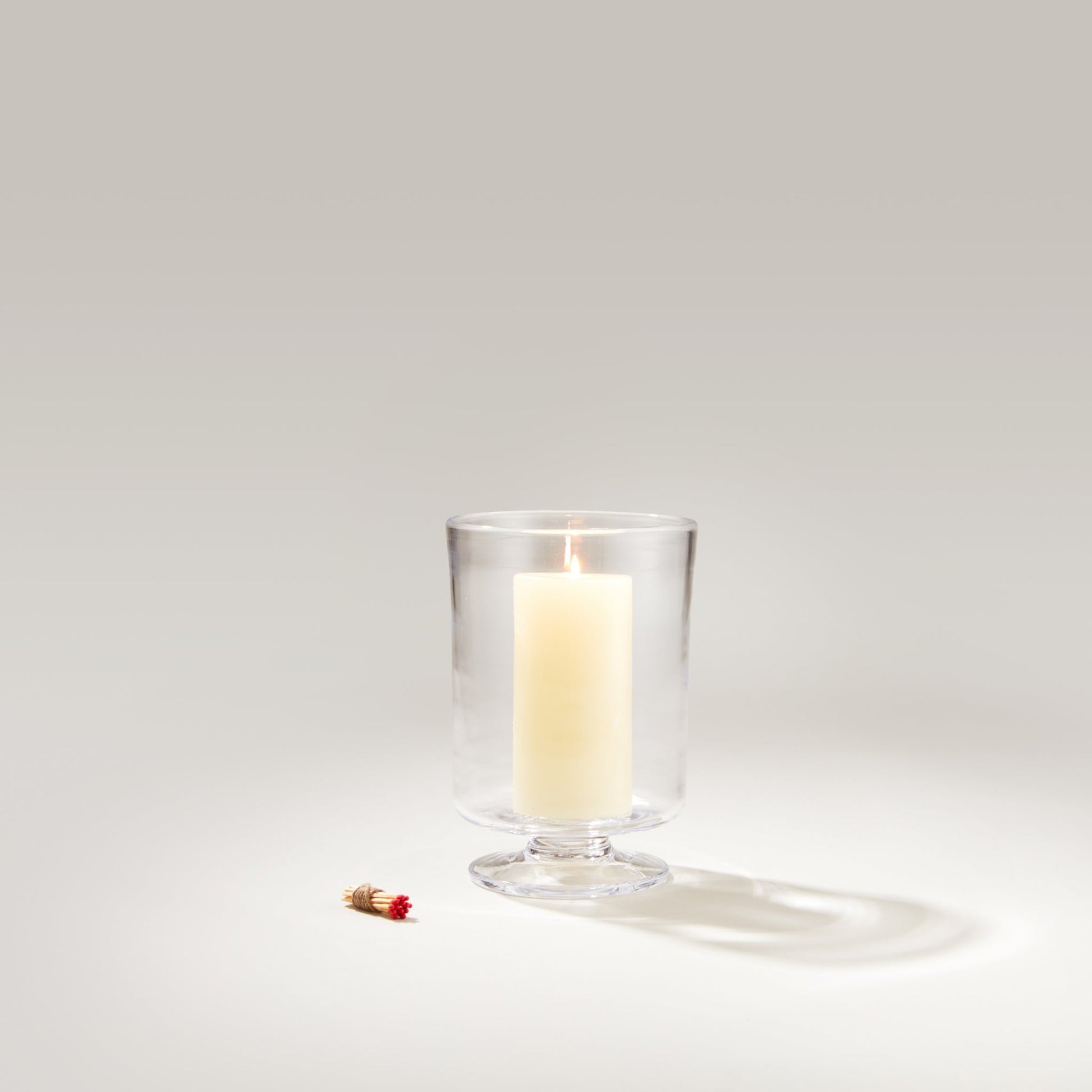 Each hurricane includes one ivory pillar candle, perfectly sized for its proportions.