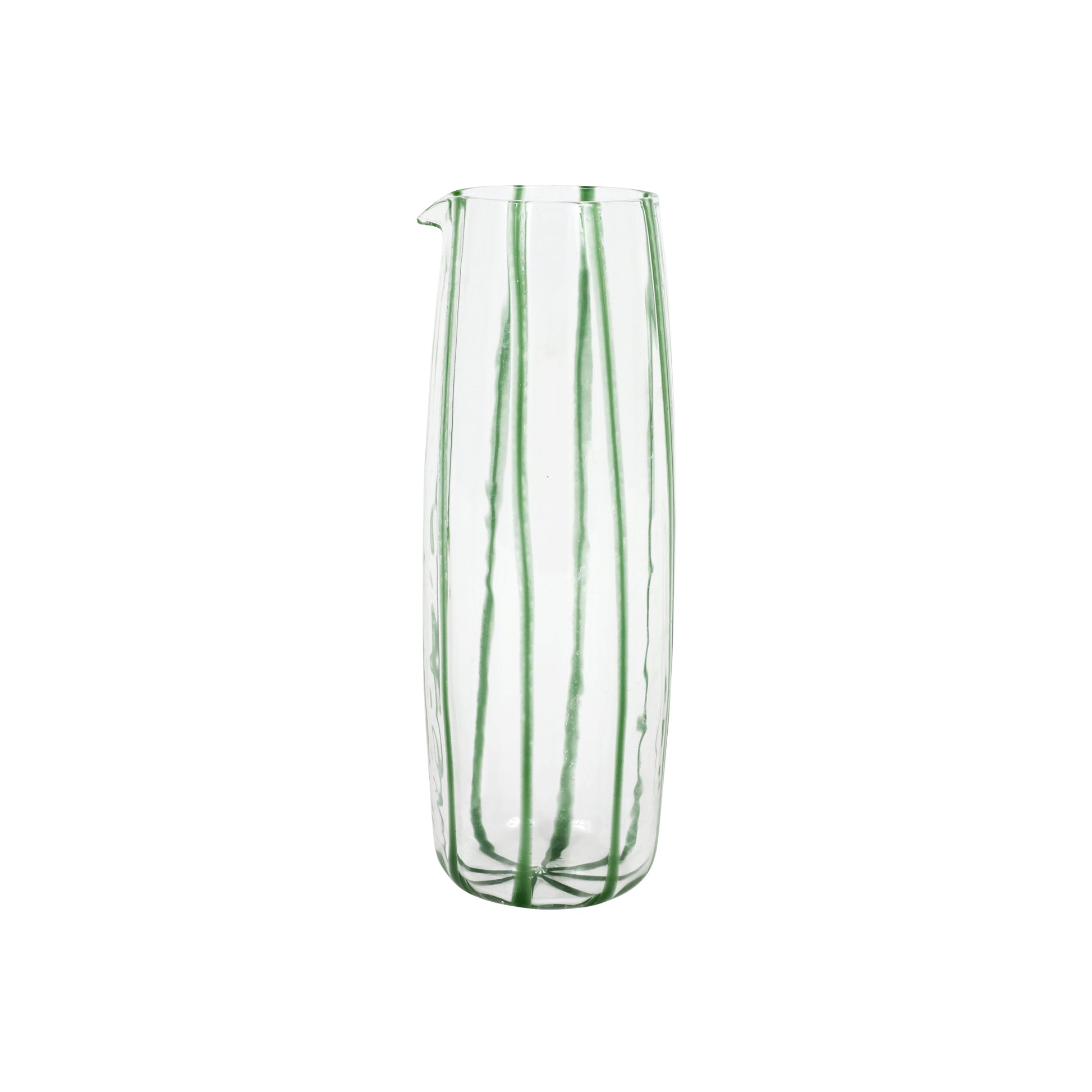 Mouthblown by skilled Italian artisans, the Nuovo Stripe Pitcher is decorated with painterly stripes that glide down its tall form, creating a playful yet refined aesthetic. Designed to hold up to three cups, it’s the perfect centerpiece for serving water, cocktails, or fresh juices while adding a vibrant accent to the table.