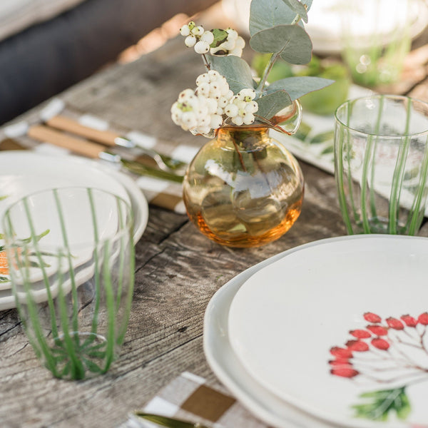 The Nuovo Stripe Tall Tumbler is a striking fusion of artistry and function. Mouthblown by skilled artisans, each glass is decorated with painterly stripes that bring a playful, modern spirit to the table. With its versatile shape and generous size, it’s perfect for water, cocktails, or refreshing iced drinks—making every pour feel special.