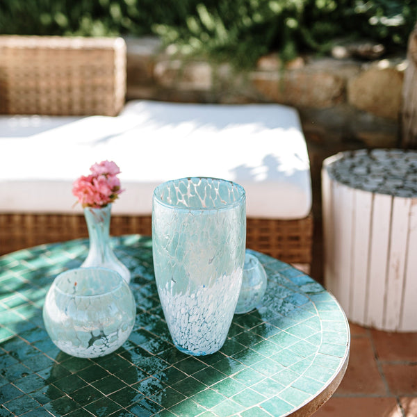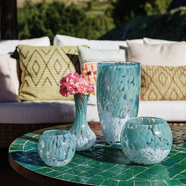 Infuse your space with the elegance of Italian craftsmanship with the Nuvola Light Blue and White Tall Vase. This cool-hued, striking one-of-a-kind piece effortlessly enhances your decor with its sophisticated silhouette and refined artistry. Perfect for showcasing floral arrangements or making a standalone style statement.