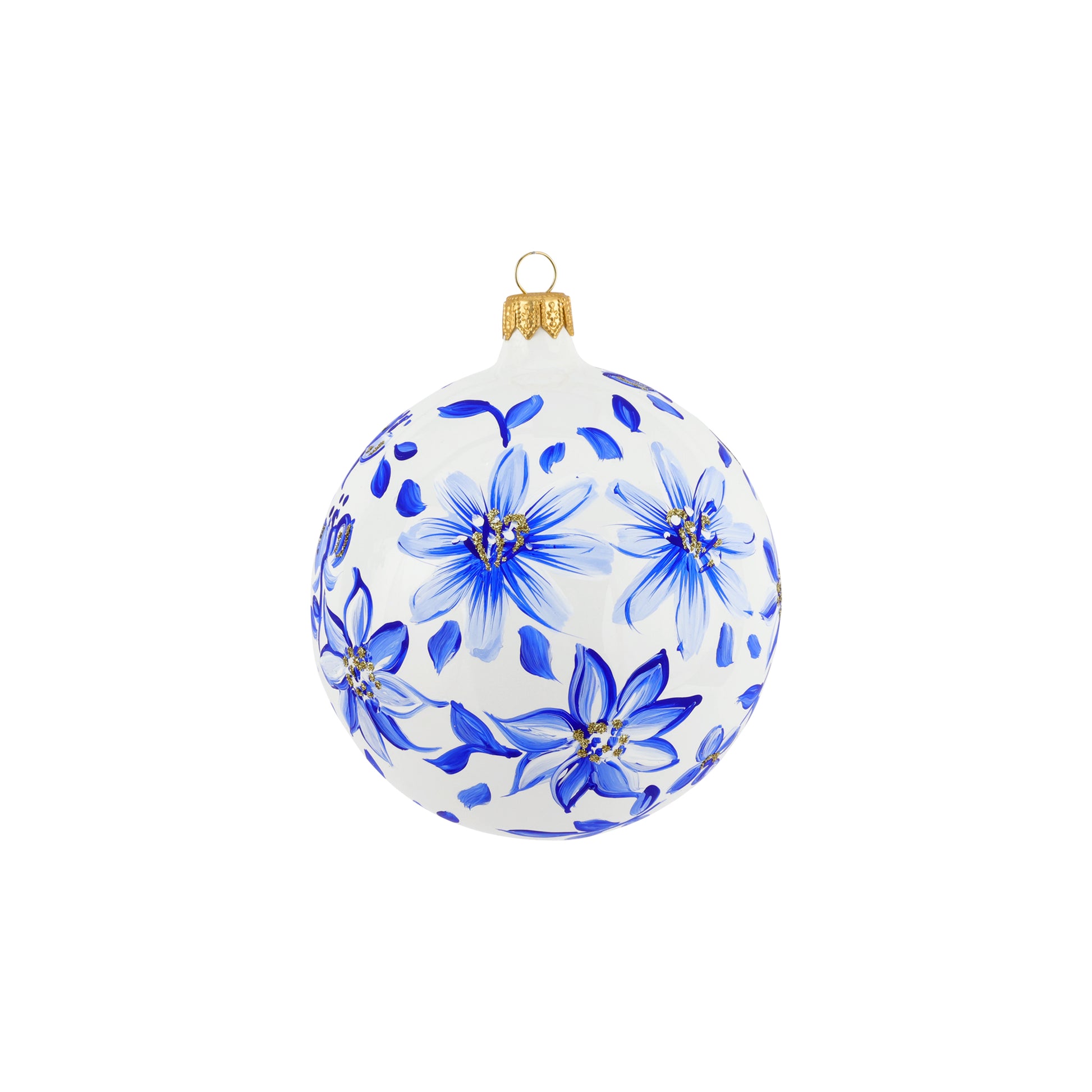 Graceful and evocative, the Blue & White Flowers Ornament brings graceful detail and quiet sophistication to festive displays.