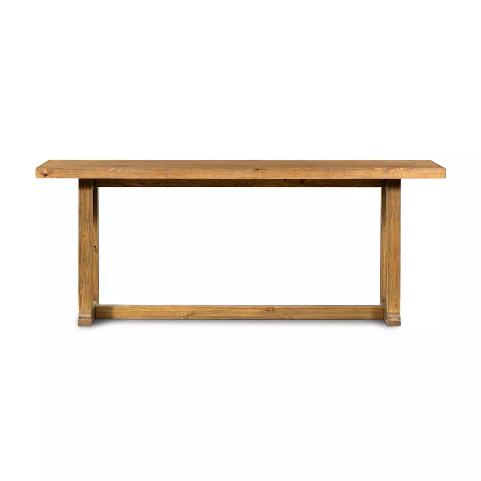 Bring a traditional sense to the entryway. Finished in a warm honey hue, a trestle-style base of solid pine supports a rectangular top of pine, waxed and bleached for a rustic look with natural depth.