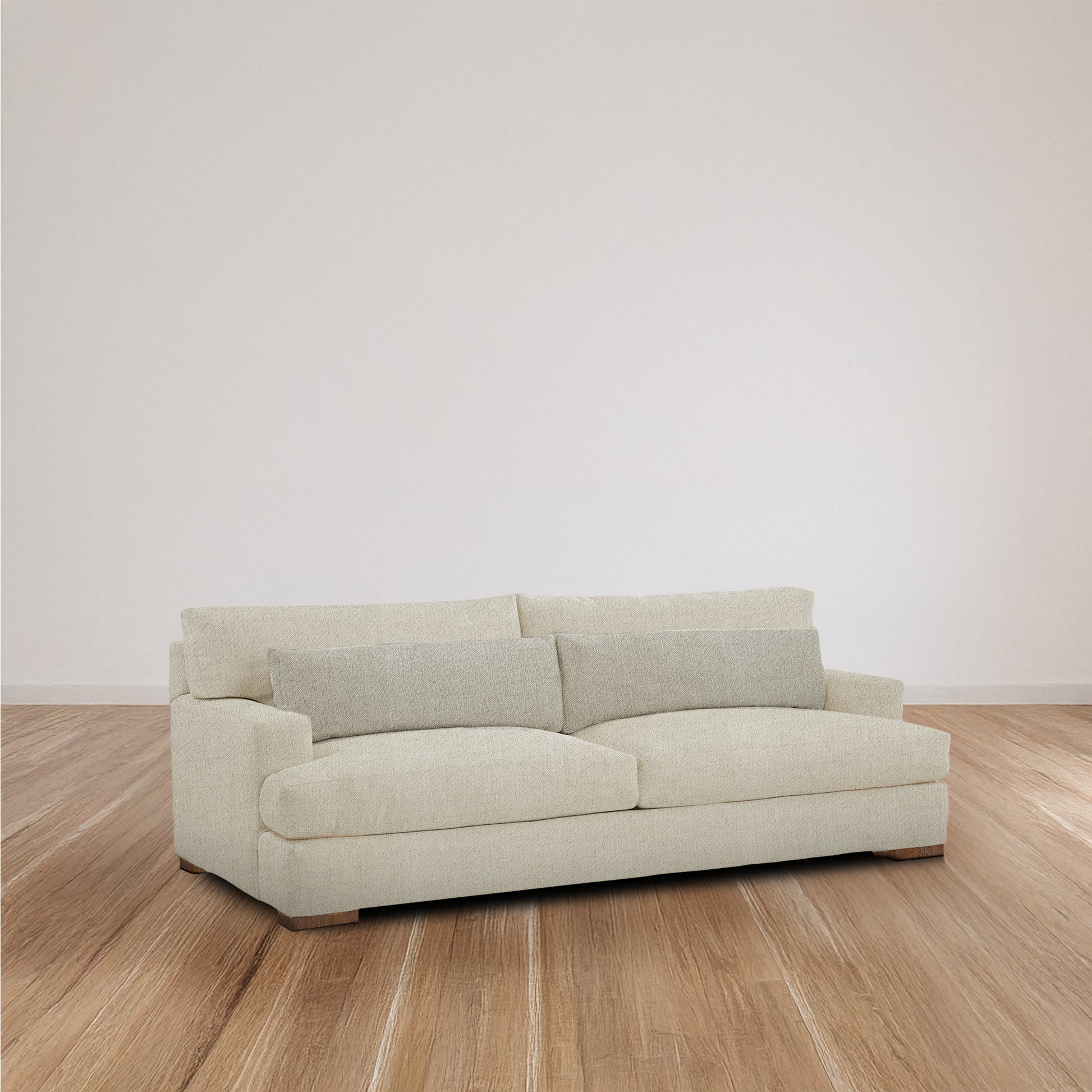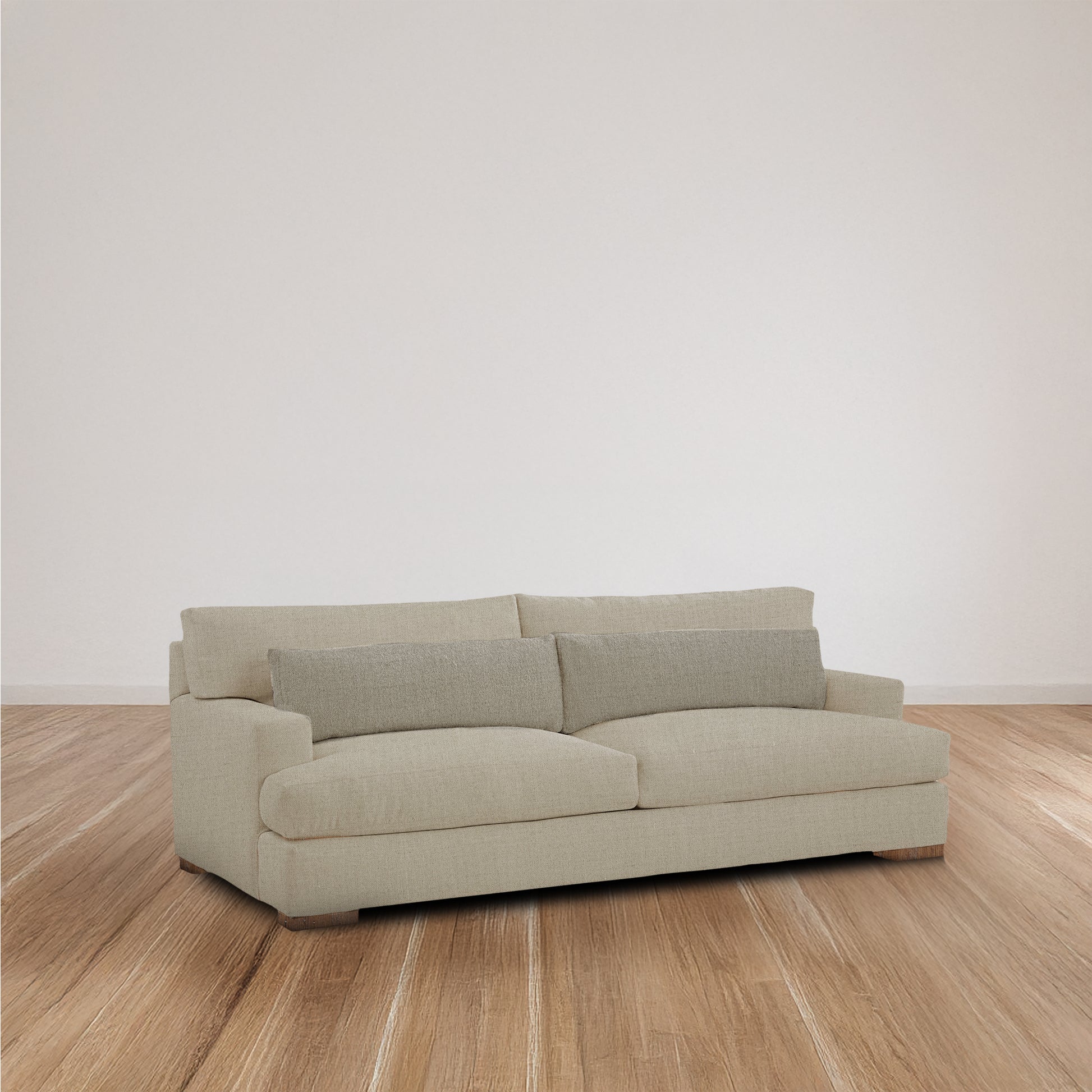 Relaxed and functional, the Palmer Apartment Sofa offers the same inviting comfort and refined details of the Palmer collection in a more compact scale, perfect for smaller living spaces. Finished with tailored topstitching, two 12″ x 37″ back bolsters, and a plush NaturalLEE cushion, it blends casual ease with timeless style.
