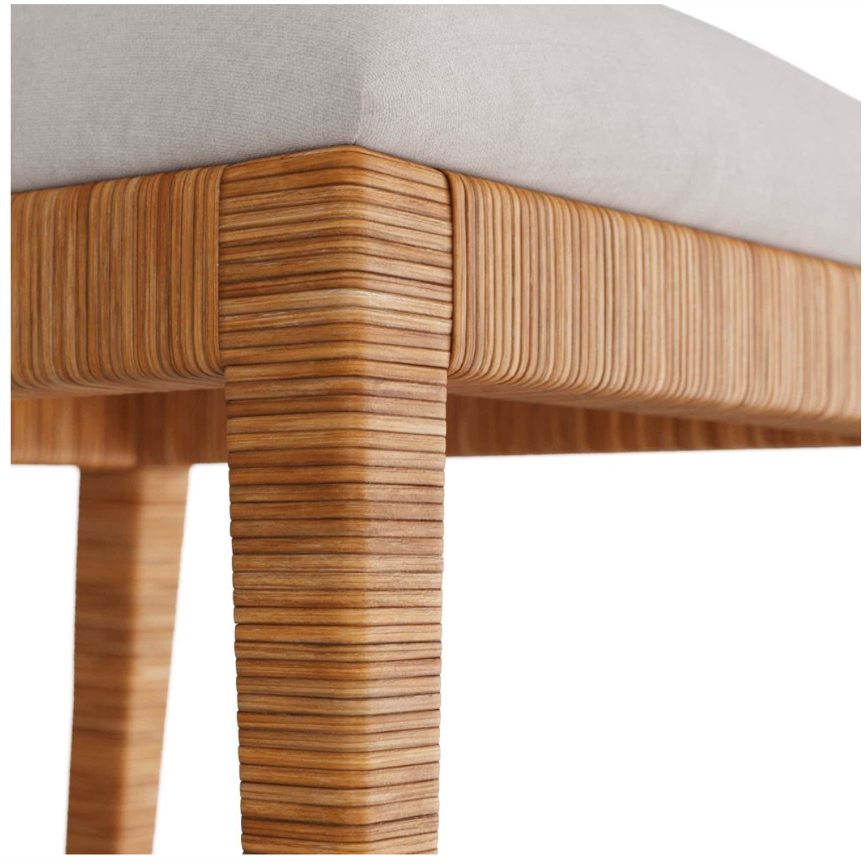 THE PALMER EXPRESSES A RELAXED YET REFINED AESTHETIC THAT MARRIES MODERN LINES WITH THE RICH APPEAL OF RATTAN. THE STRIKING SIDE CHAIR IS DESIGNED WITH NATURAL RATTAN THAT WRAPS THE CHAIR’S MAHOGANY FRAME AND FORMS THE CANING ON THE ARM PANELS AND BACK REST. THE SEAT IS UPHOLSTERED IN BREEZY, BRIGHT WHITE MUSLIN FOR RECOVERING. FINISHES WILL VARY.