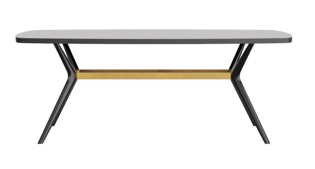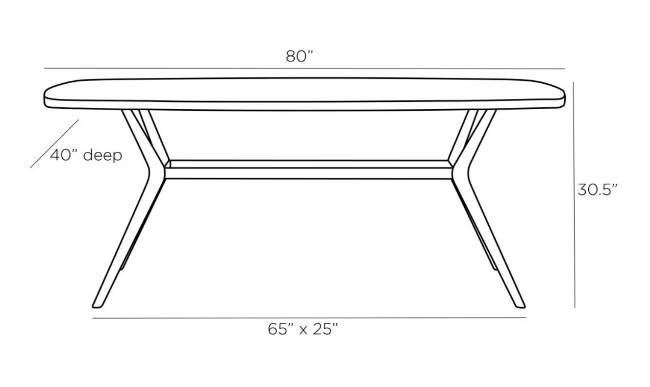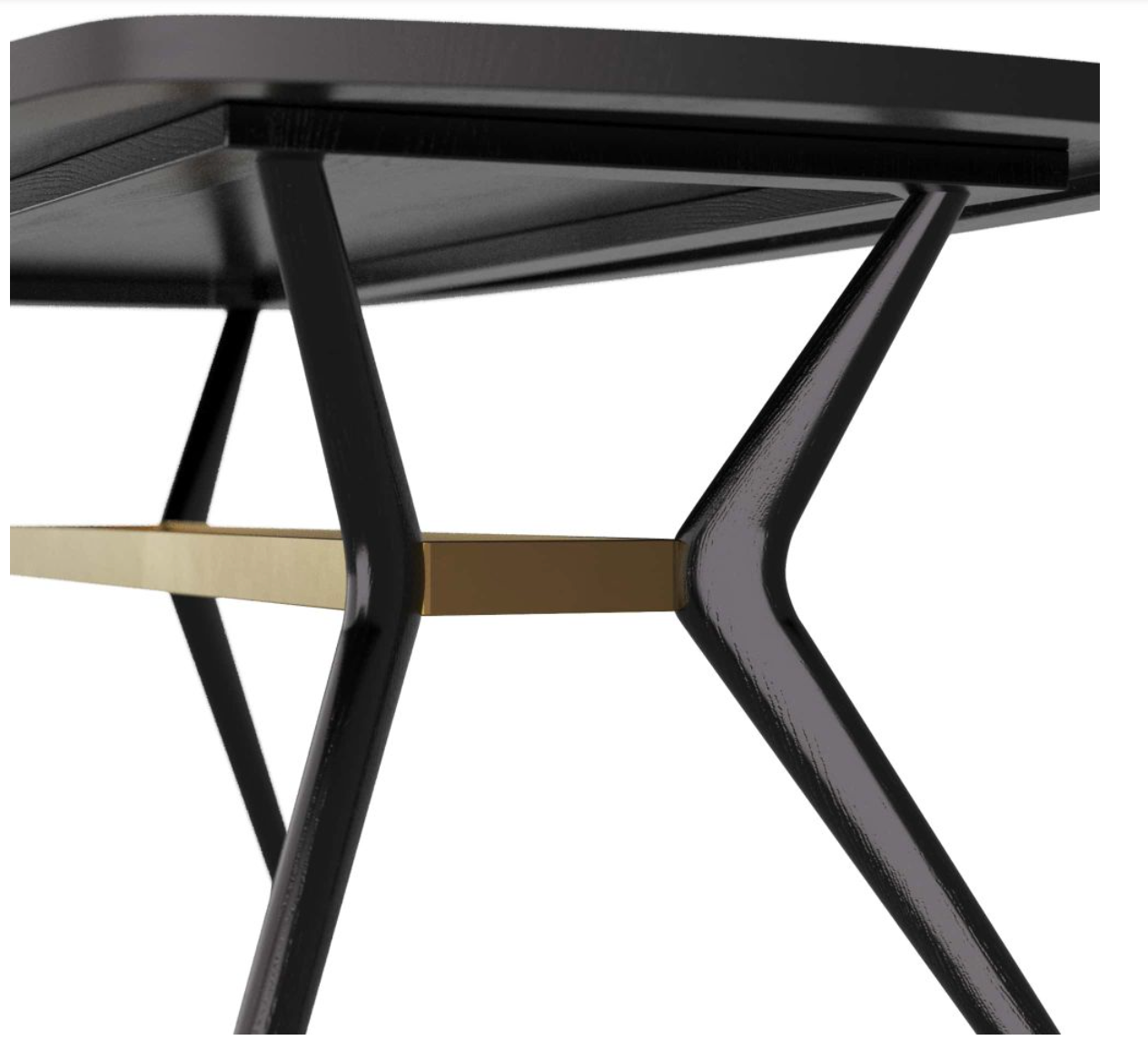 WITH A MIDCENTURY-INSPIRED, SURFBOARD SILHOUETTE AND ANGULAR LEGS, THE PALTO DINING TABLE IS STRIKING FROM EVERY ANGLE. THE STYLE-PACKED TABLE IS CONSTRUCTED FROM STRAIGHT-GRAIN EBONY OAK VENEER, WITH SOLID OAK LEGS AND AN ANTIQUE BRASS STRETCHER THAT OFFERS SUPPORT AND ARTFUL CONTRAST. FINISH WILL VARY.