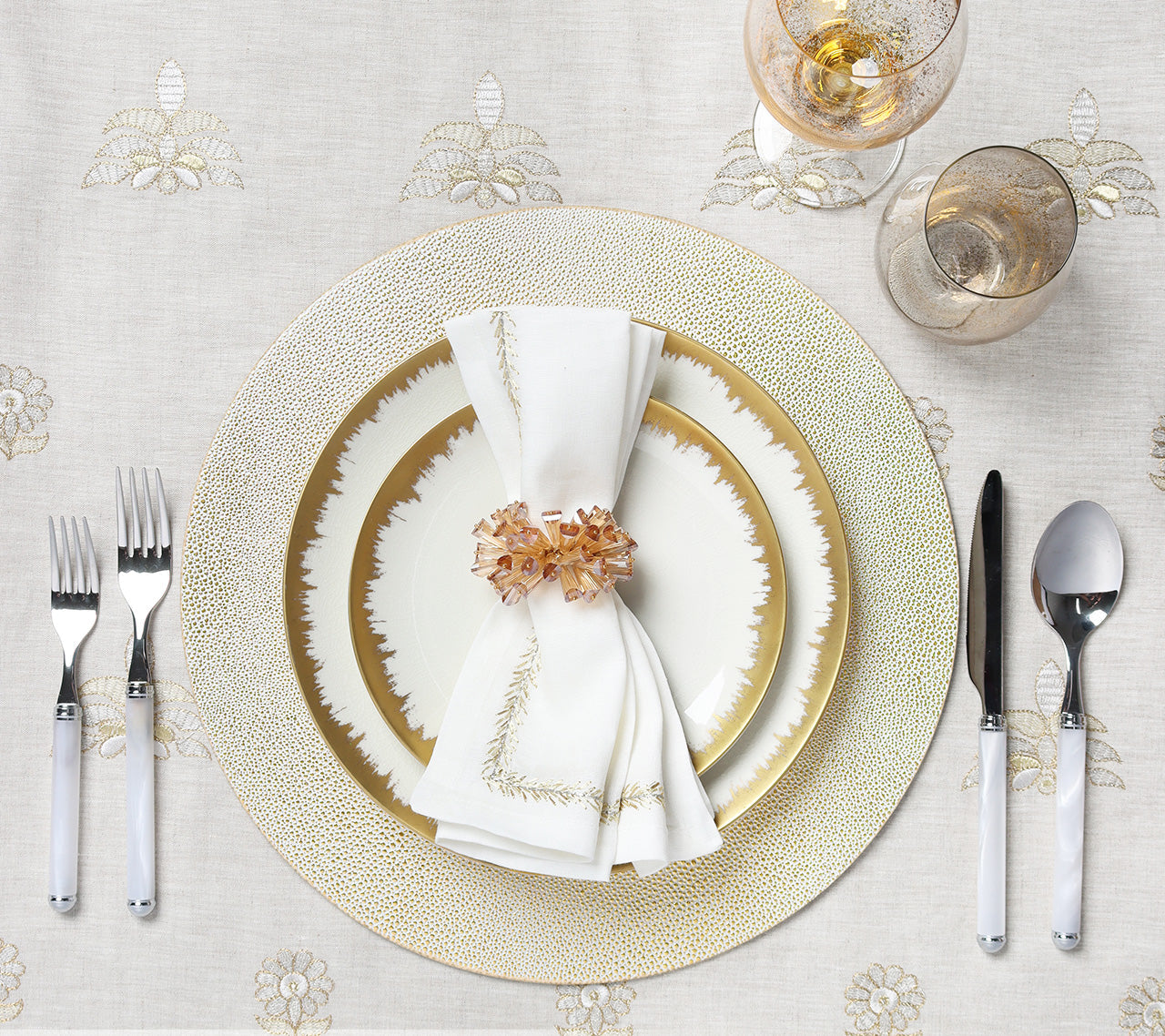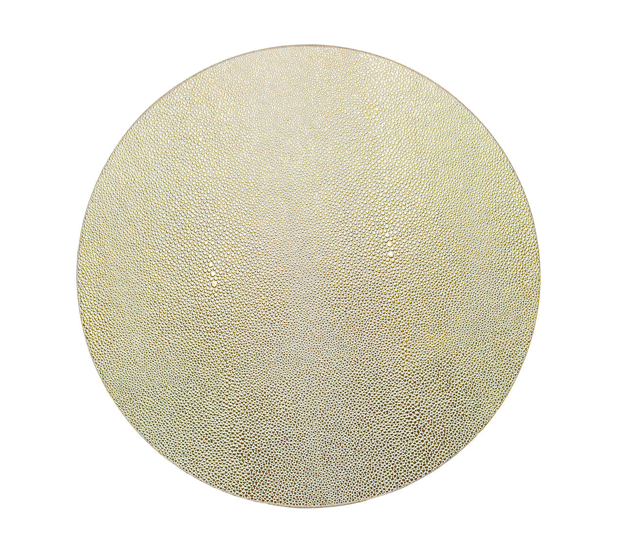 Inspired by the smooth elegance of natural stones, the Pebble Placemat brings a luxurious, tactile element to any tablescape. Its flawless surface evokes the calming beauty of pebbled riverbeds, while the metallic pyrite finish adds understated richness and contemporary flair. Whether you're hosting a cozy fall dinner or an elegant celebration, this placemat sets the tone for refined, effortless style.