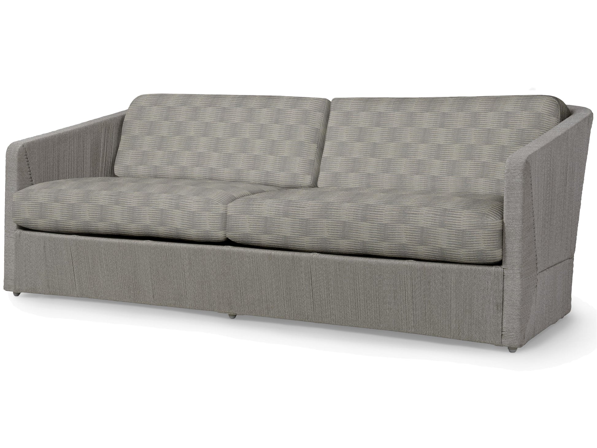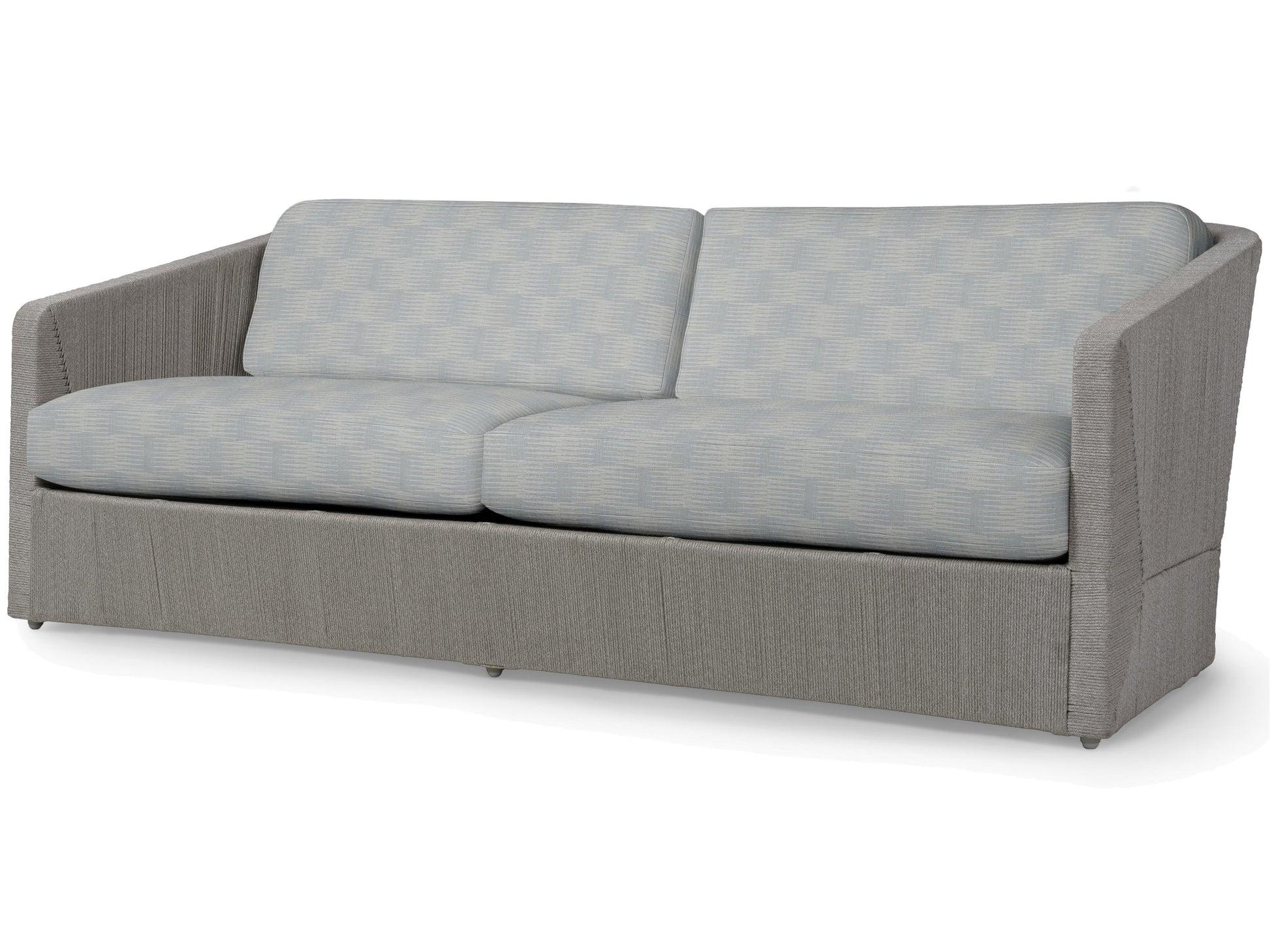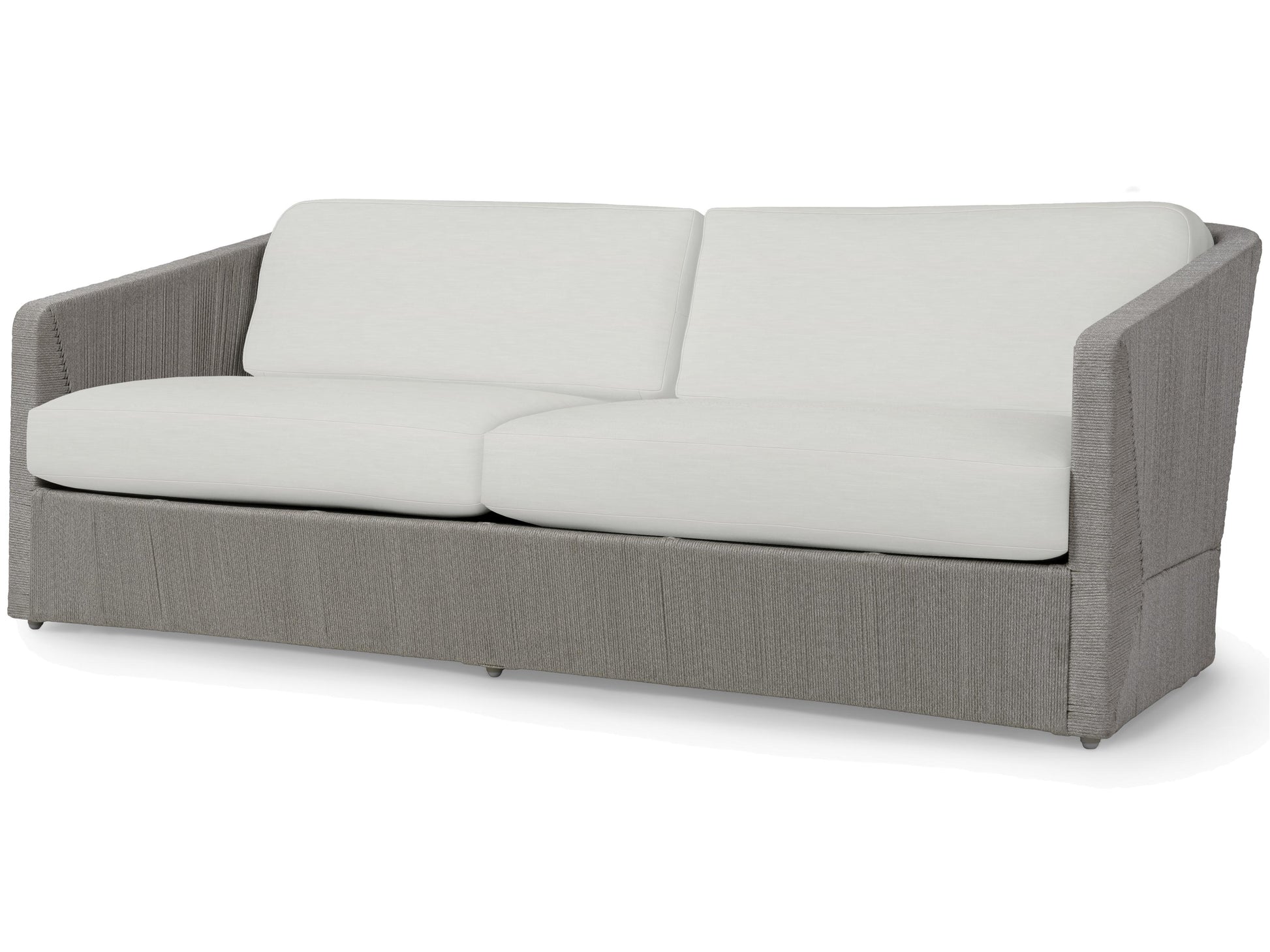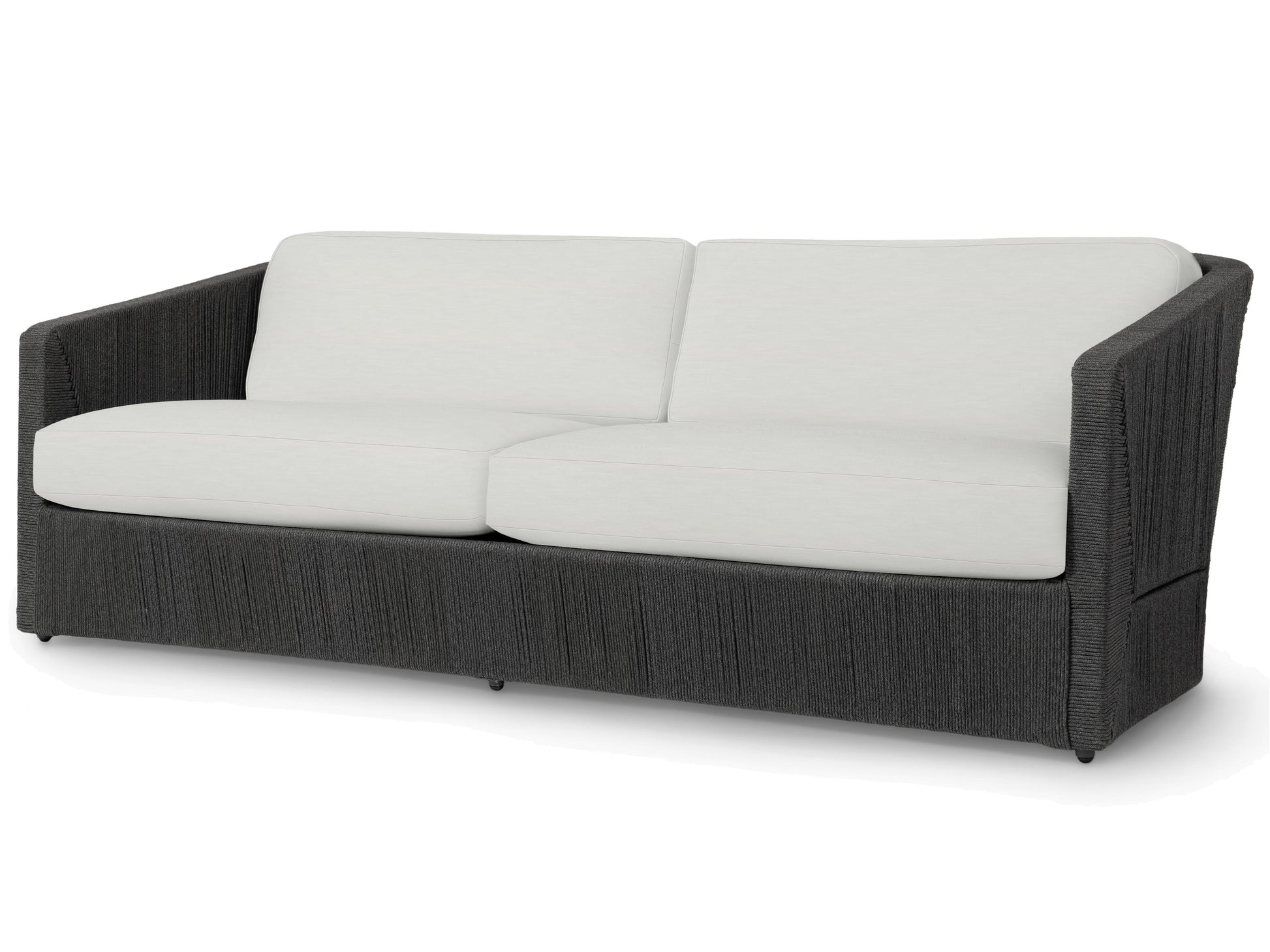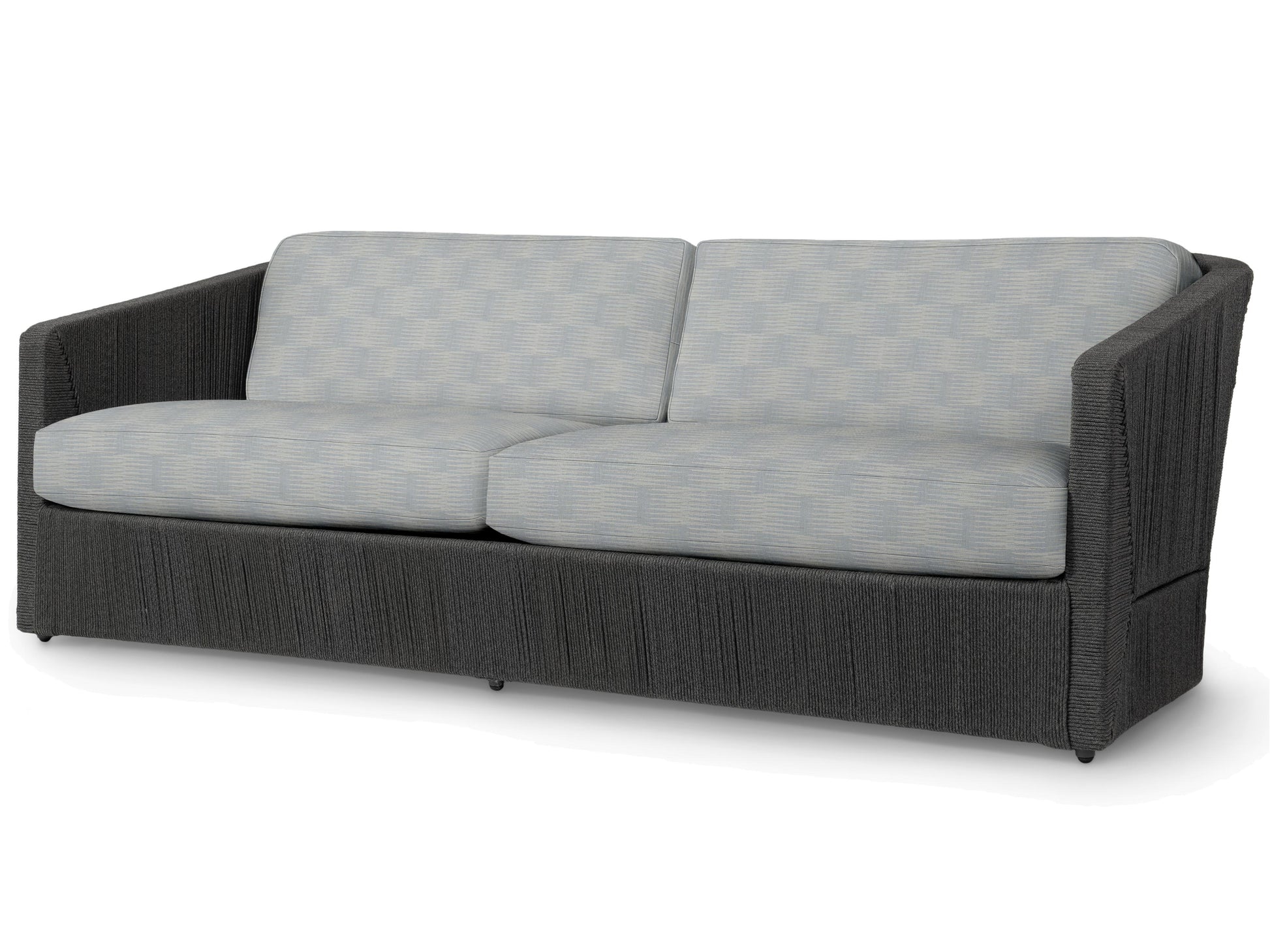 The Point Dume Outdoor Sofa pairs clean-lined design with rugged outdoor durability. Crafted with a powder-coated aluminum frame, it features hand-woven synthetic rope in a Coal finish, offering a bold contrast and rich texture. The UV-protected, all-weather weave resists cracking, peeling, fading, and breaking, ensuring long-lasting performance in any climate. Includes loose seat and back cushions for tailored comfort and relaxed style.