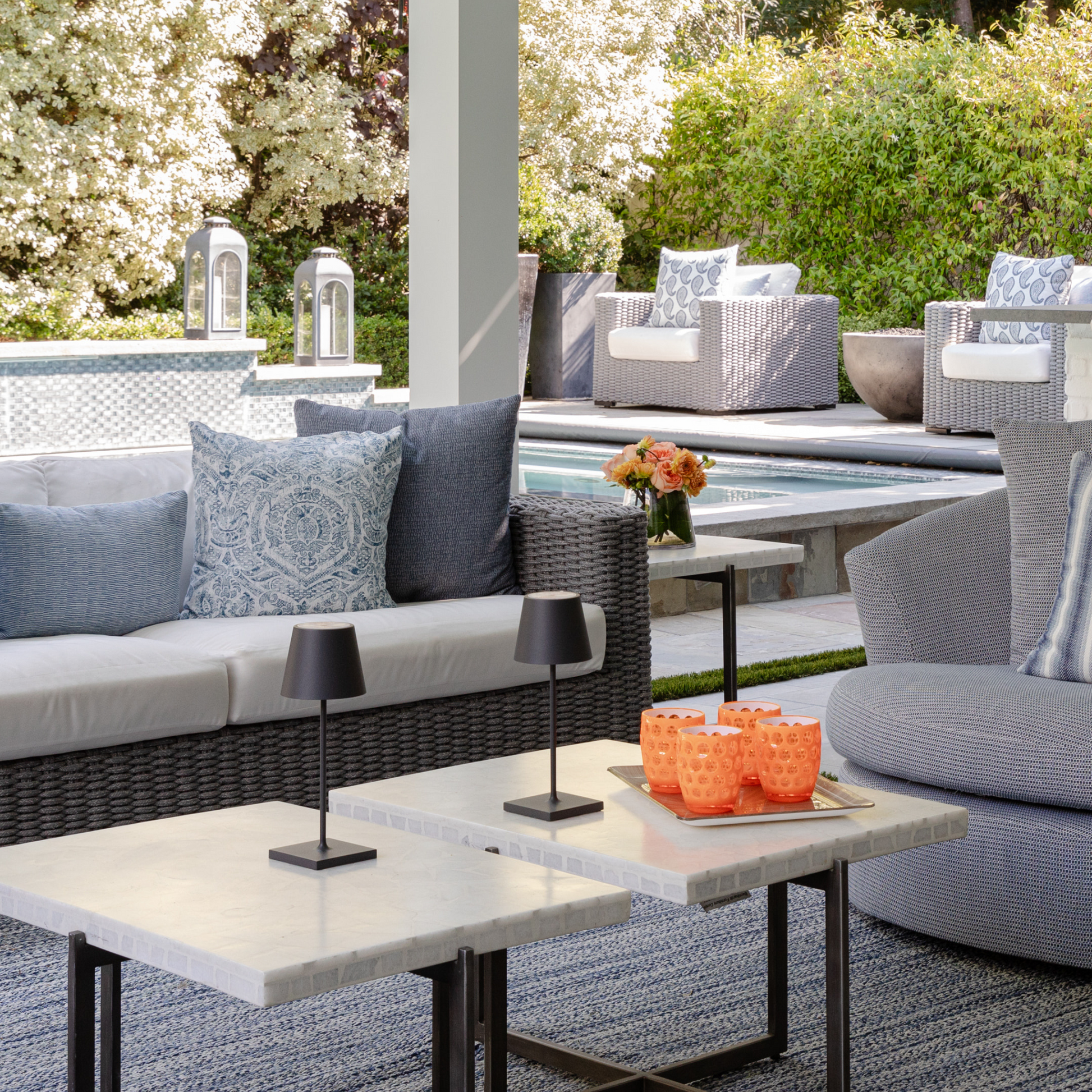 To recharge your Poldina Pro table lamp, plug the provided charging base into an outlet and place the lamp on the base. The translucent top will glow red while charging and turn green once the charging cycle is complete. A full charge takes around 6 hours. The lamp should be removed from the charging cradle when the battery is fully charged.