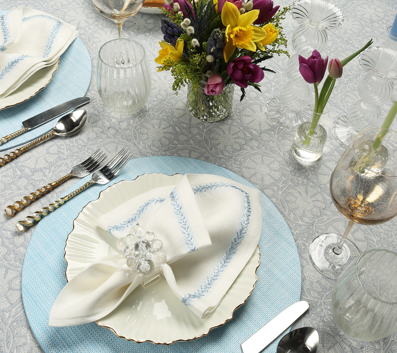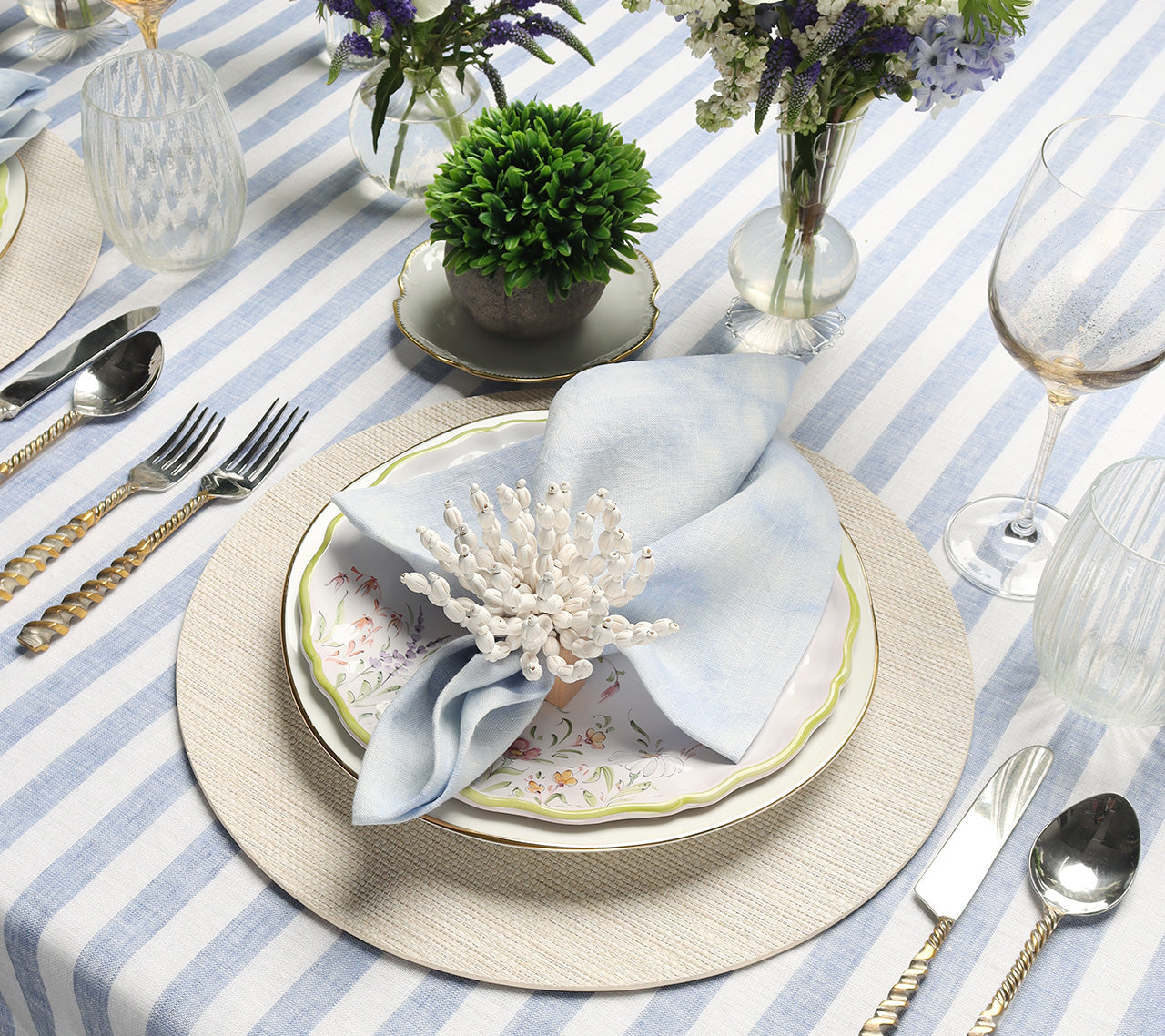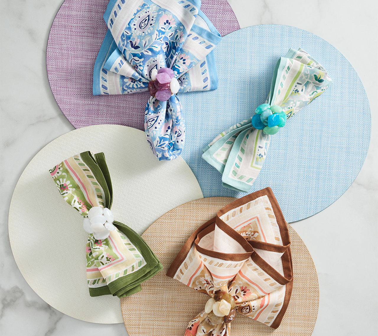 The round Portofino Placemat in lilac allows for easy outdoor entertaining while capturing the heathered texture of the traditional cross-dye cloth application. This woven placemat has the look and feel of raffia yet is easily cleaned. Offered in two pastel colors (natural and lilac), this round placemat is a summertime entertaining staple.