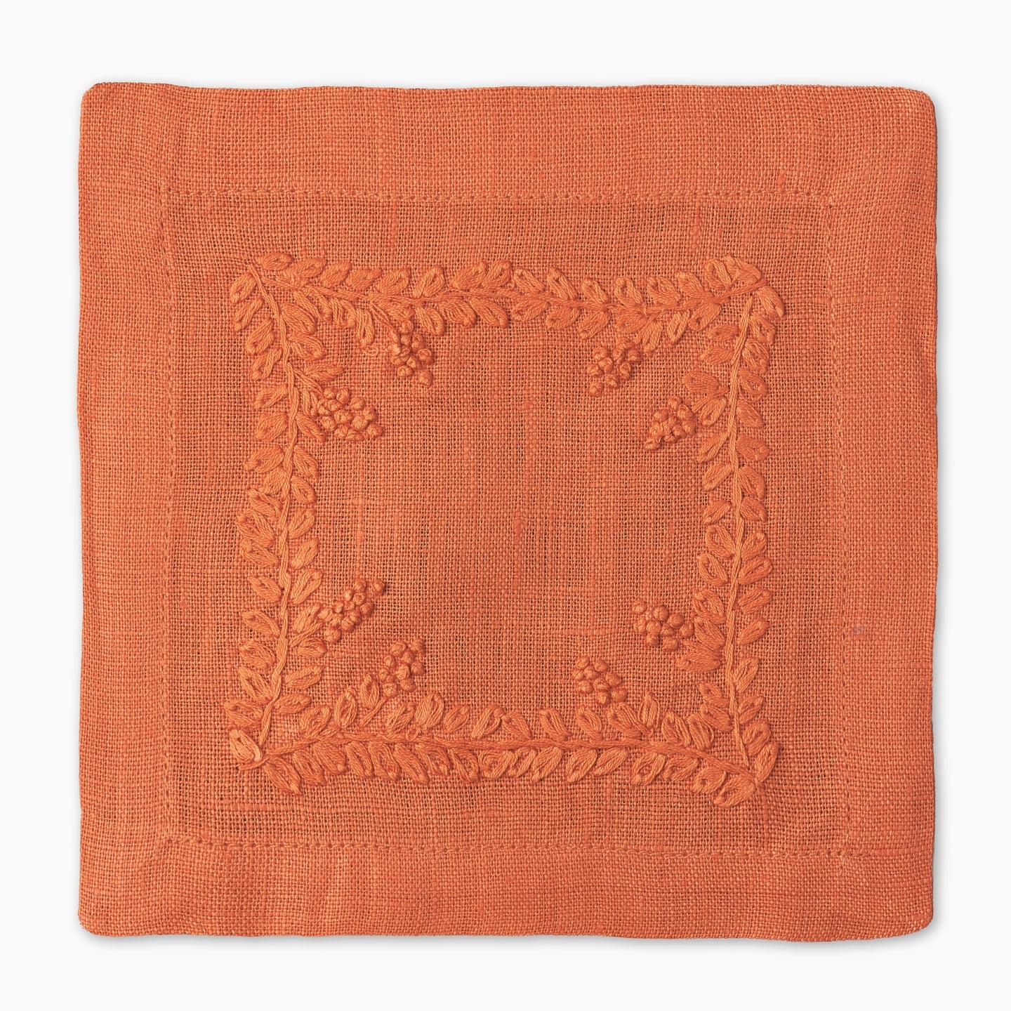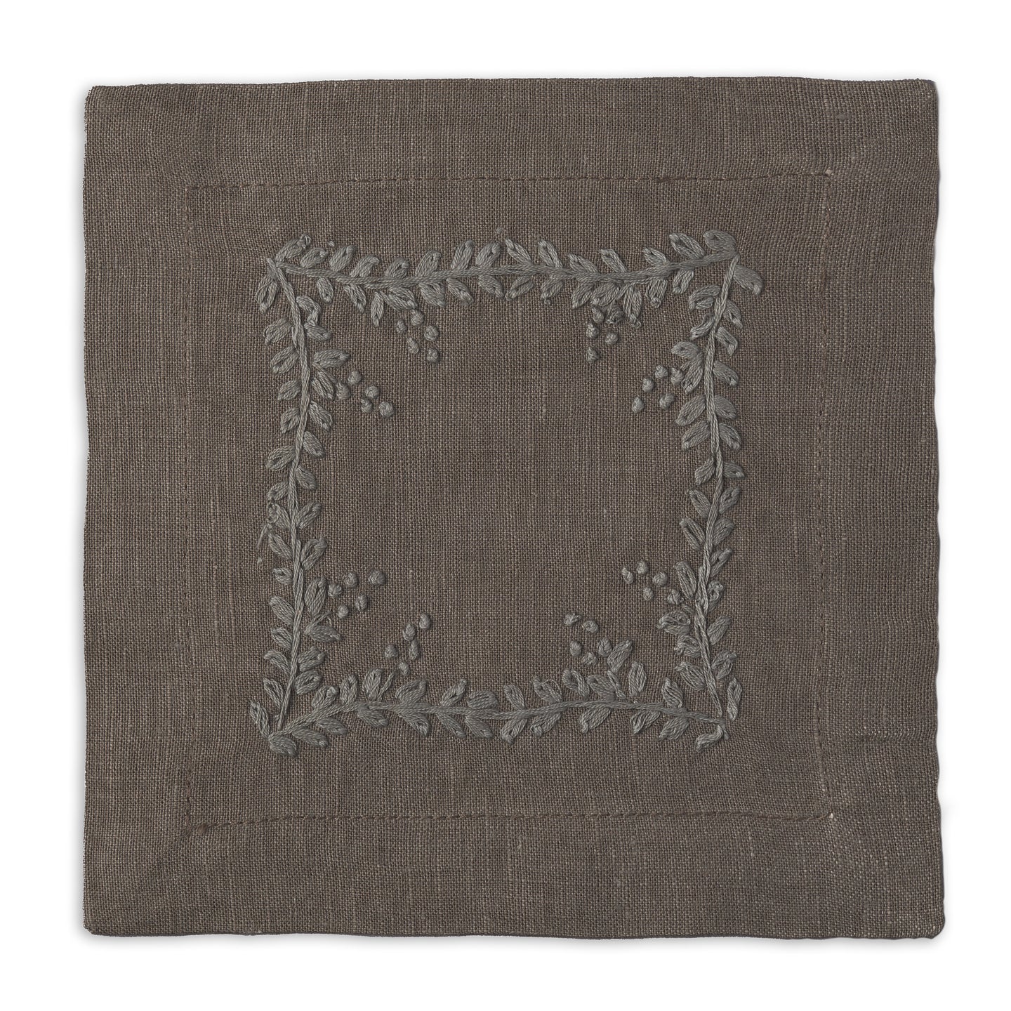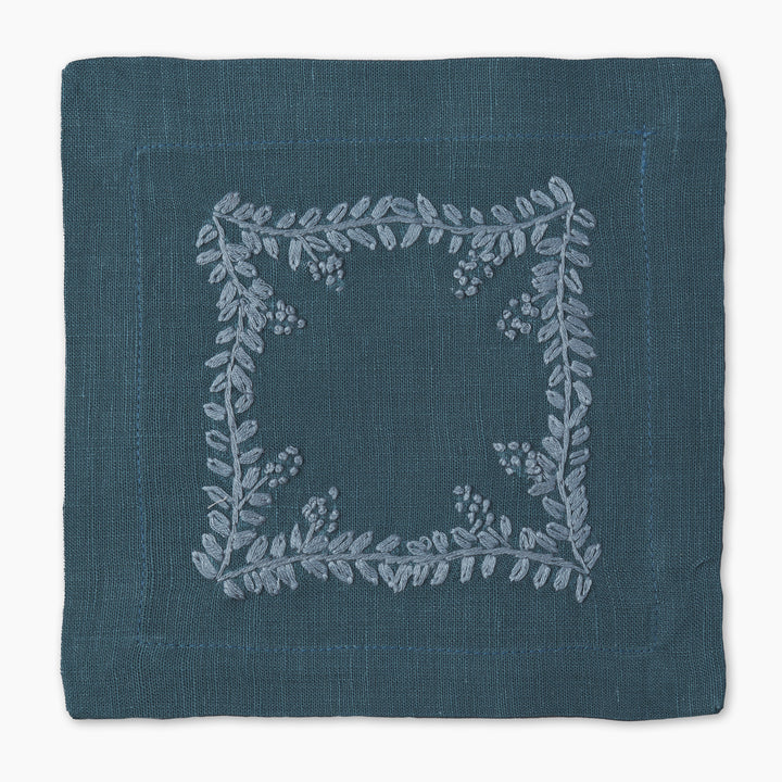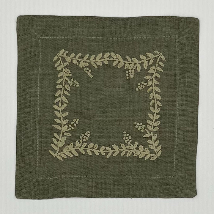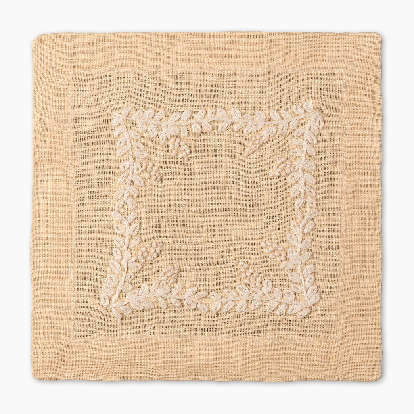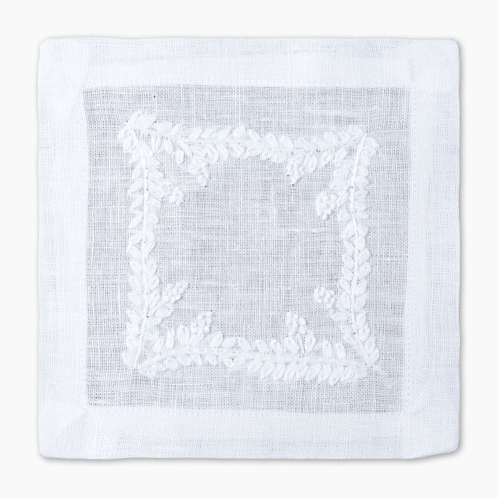 Made from pure linen and finished with a clean mitered hem, the Prism Vine Linen Cocktail Napkin is hand-embroidered on all four sides for a refined touch. Small in size yet rich in detail, it’s perfect for entertaining with elegance.