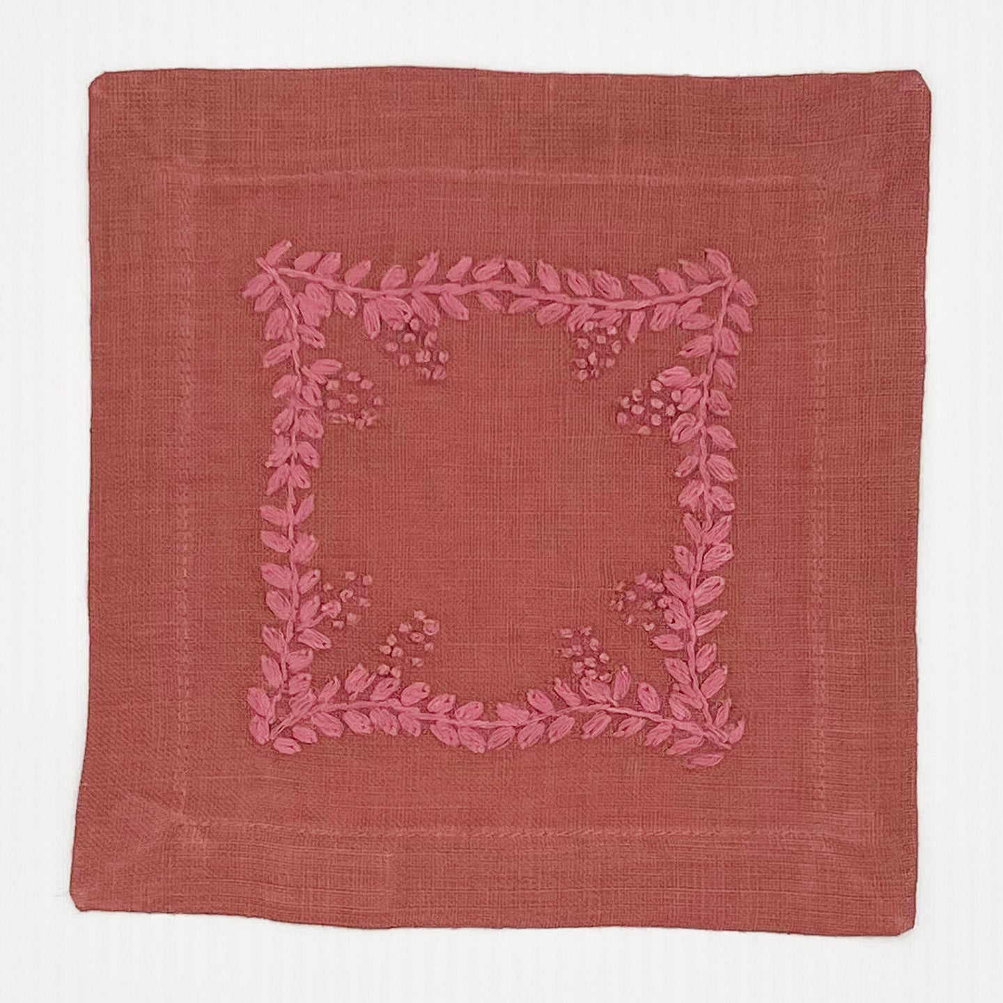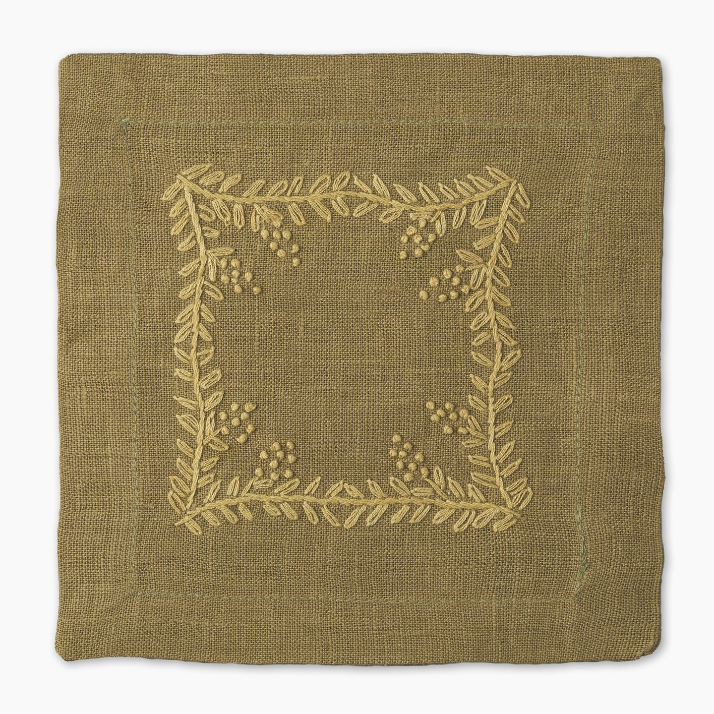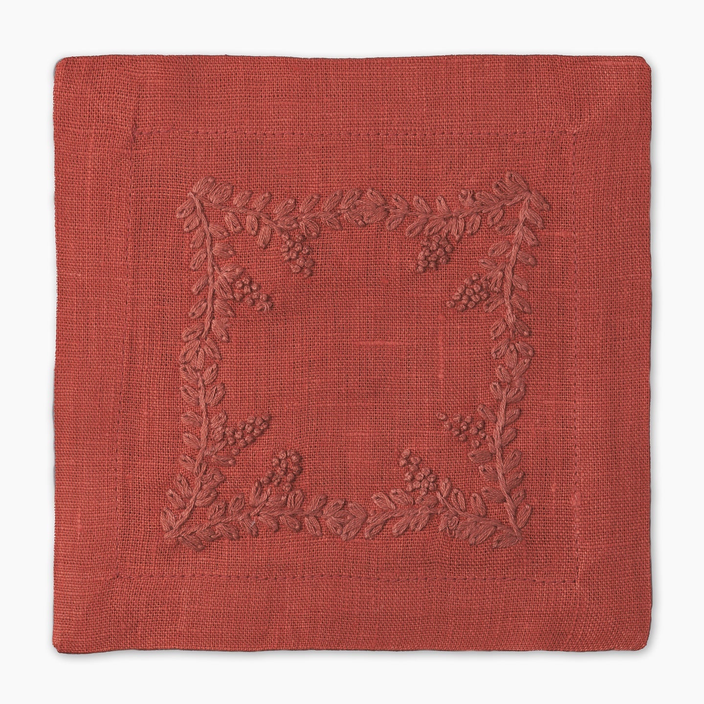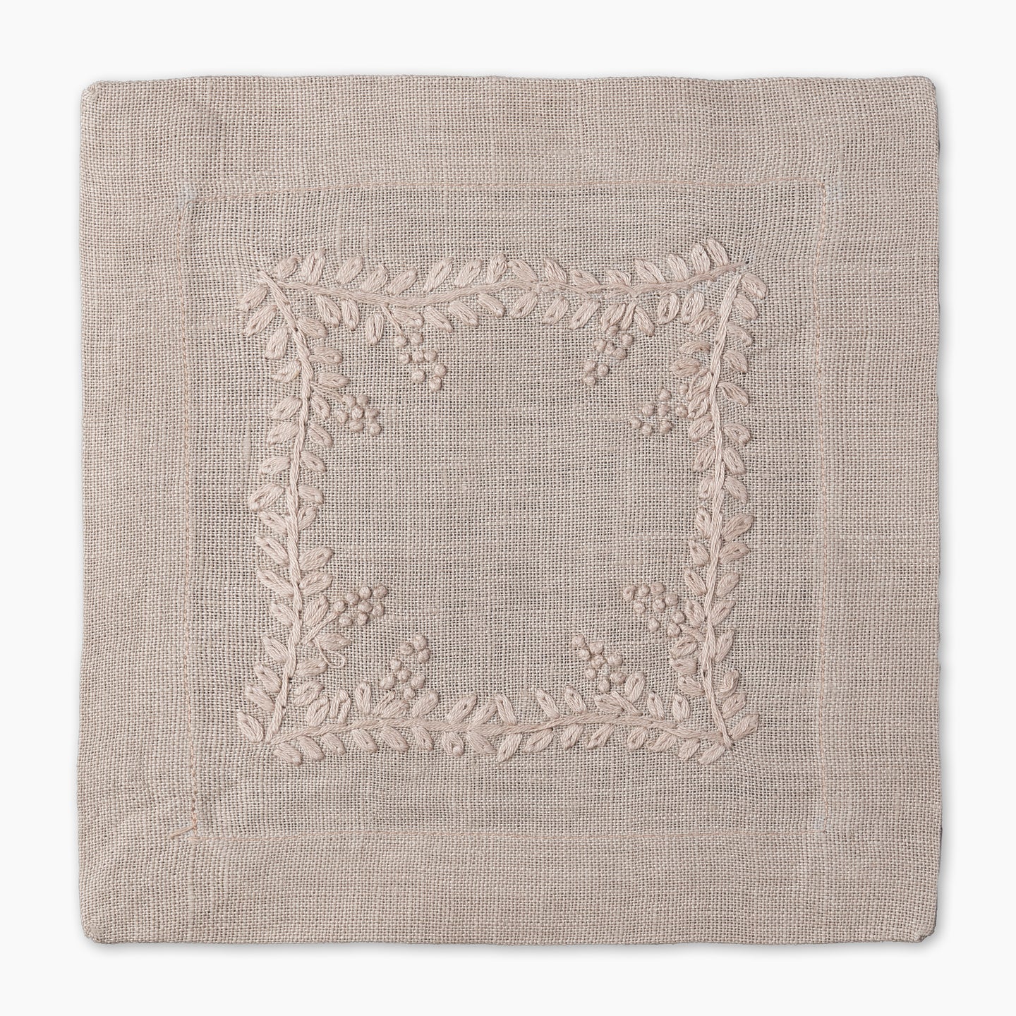 Made from pure linen and finished with a clean mitered hem, the Prism Vine Linen Cocktail Napkin is hand-embroidered on all four sides for a refined touch. Small in size yet rich in detail, it’s perfect for entertaining with elegance.