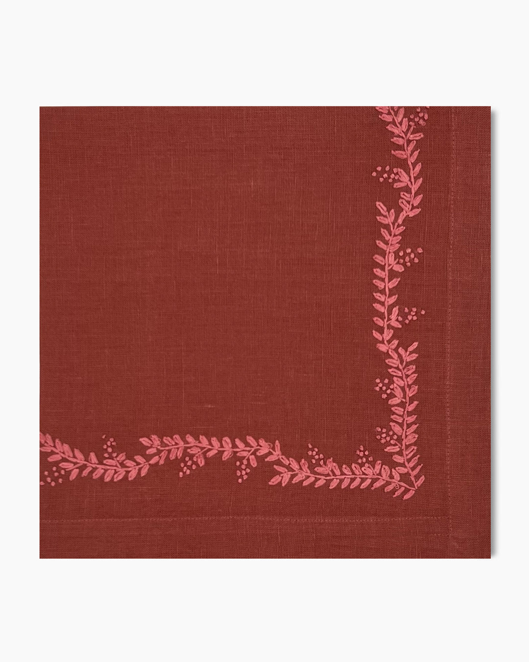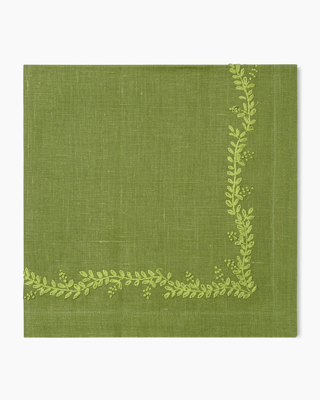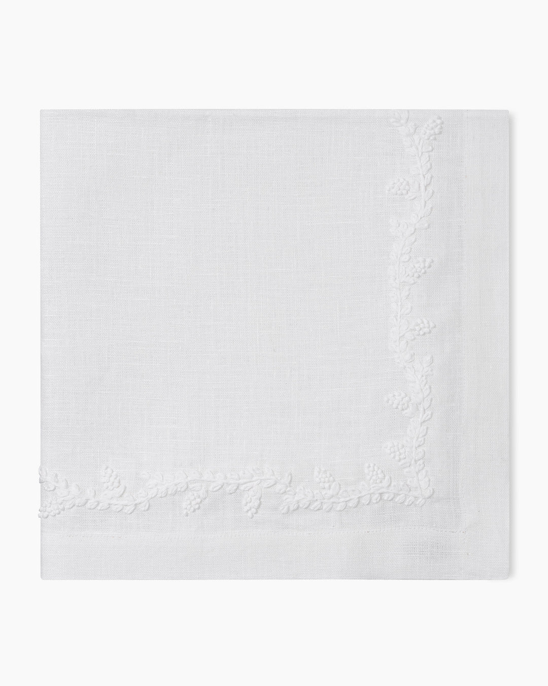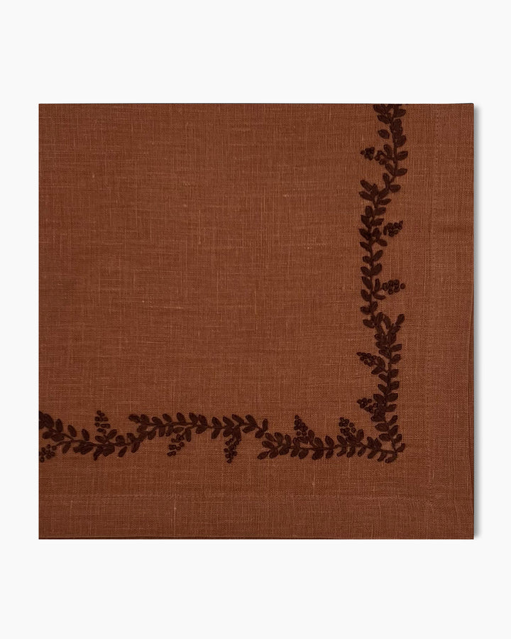 Crafted from pure linen, the Prism Vine Linen Dinner Napkin is finished with a clean mitered hem and delicately hand-embroidered on all four sides. A timeless essential, it pairs elegance with everyday usability.