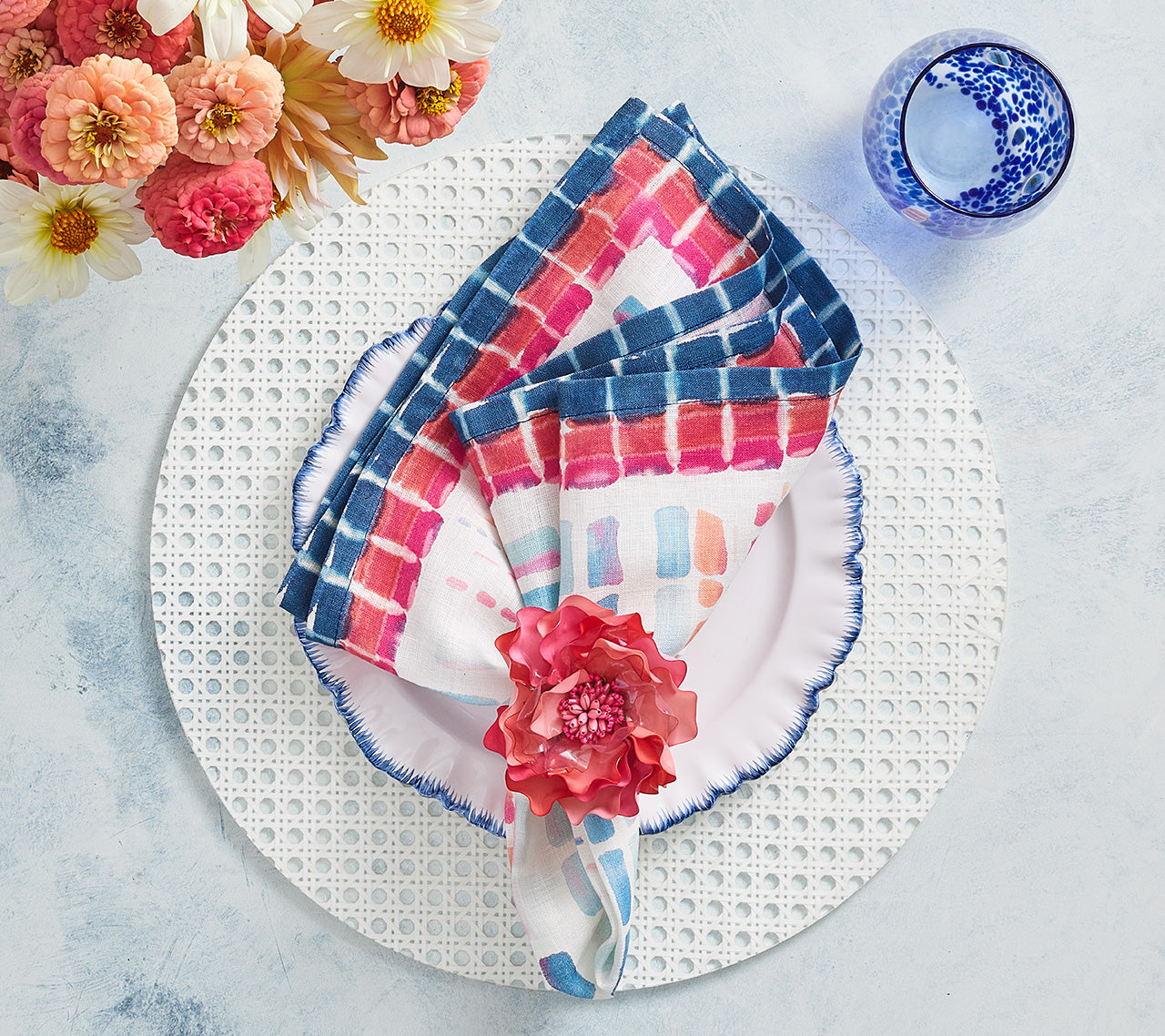 The Reed Placemat is a classic summertime essential with a modern twist. This faux-wicker placemat with a woven cane pattern is encased in hand-poured acrylic, making it perfect for outdoor entertaining. Versatile and stylish, it easily complements various colorful tabletop accessories, allowing you to mix and match effortlessly. For a cohesive summery look, pair it with the coordinating coasters and elevate your outdoor dining experience.