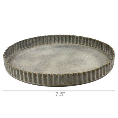 HomArt's large round Ross Trays are designed with a uniquely old-Americas chic style, possessing a distinct handmade feel without being actually hand made. Each tray makes perfect use of deep crimped edges and is applicable to a multitude of tasks, measuring 7.5 x 0.75 inches, but is not food safe. HomArt's round Ross Trays are available in three sizes and work very well as a set; however, the large tray is highly effective alone when appropriated as a solitary display space, especially when HomArt's medium clear Glass Dome is used. For Decoration Use Only - Do Not Use for Food