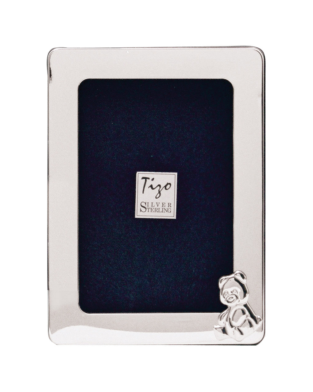 Charming and timeless, the Tizo Rounded Corners Baby Bear Sterling Frame beautifully captures the innocence of childhood. Crafted from genuine 925 sterling silver, this frame features softly rounded edges and an adorable bear motif—perfect for displaying baby photos or treasured family moments. Designed with a tarnish-resistant finish and a wood back, it combines classic elegance with lasting quality.
