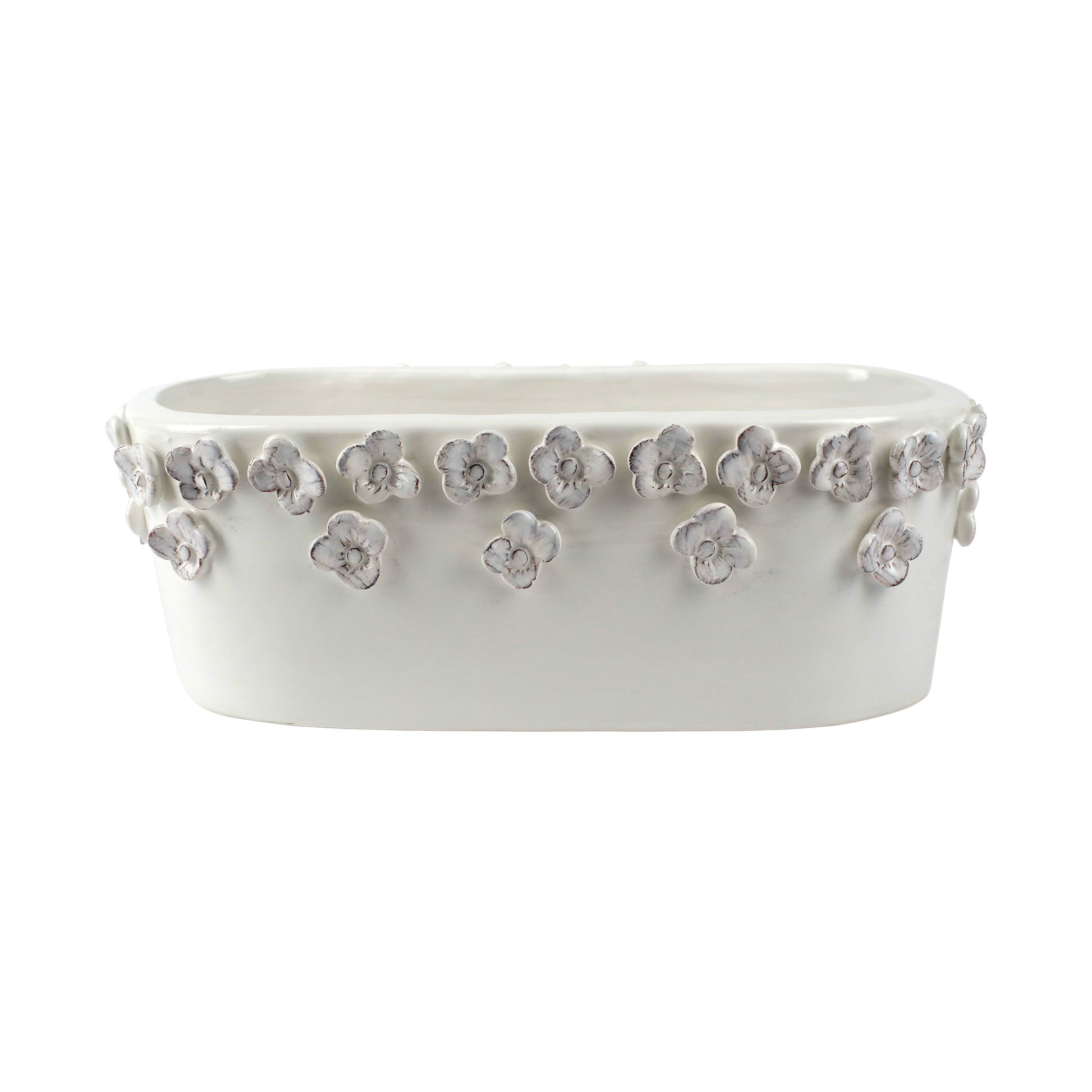 Bring timeless Italian charm to your decor with the Rustic Garden White Flower Oval Planter.