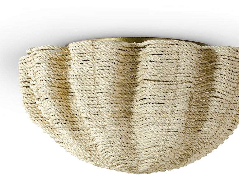 The Scallop Flushmount blends handwoven artistry with functional design. Crafted from natural abaca rope—twisted and woven over a powder-coated metal frame—this piece brings organic warmth and coastal charm to ceilings with lower clearance. Finished with an antique gold canopy, it adds a refined touch to bedrooms, entryways, or hallways.