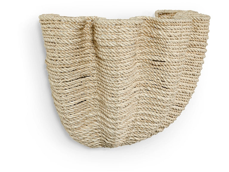 The Scallop Sconce is hand-twisted and woven from natural abaca rope over a powder-coated metal frame, bringing warm, organic texture to your walls. Its soft, curved silhouette is balanced by an antique gold finished backplate, creating a beautiful blend of natural materials and refined detail.