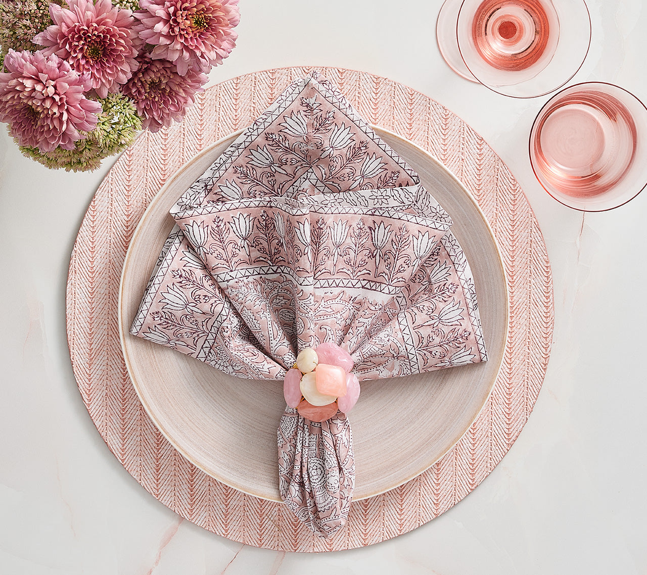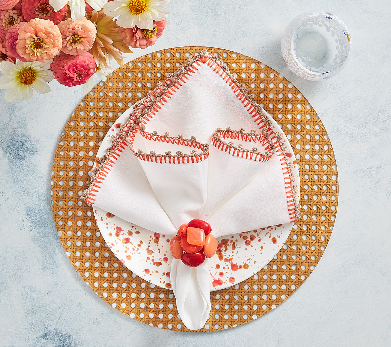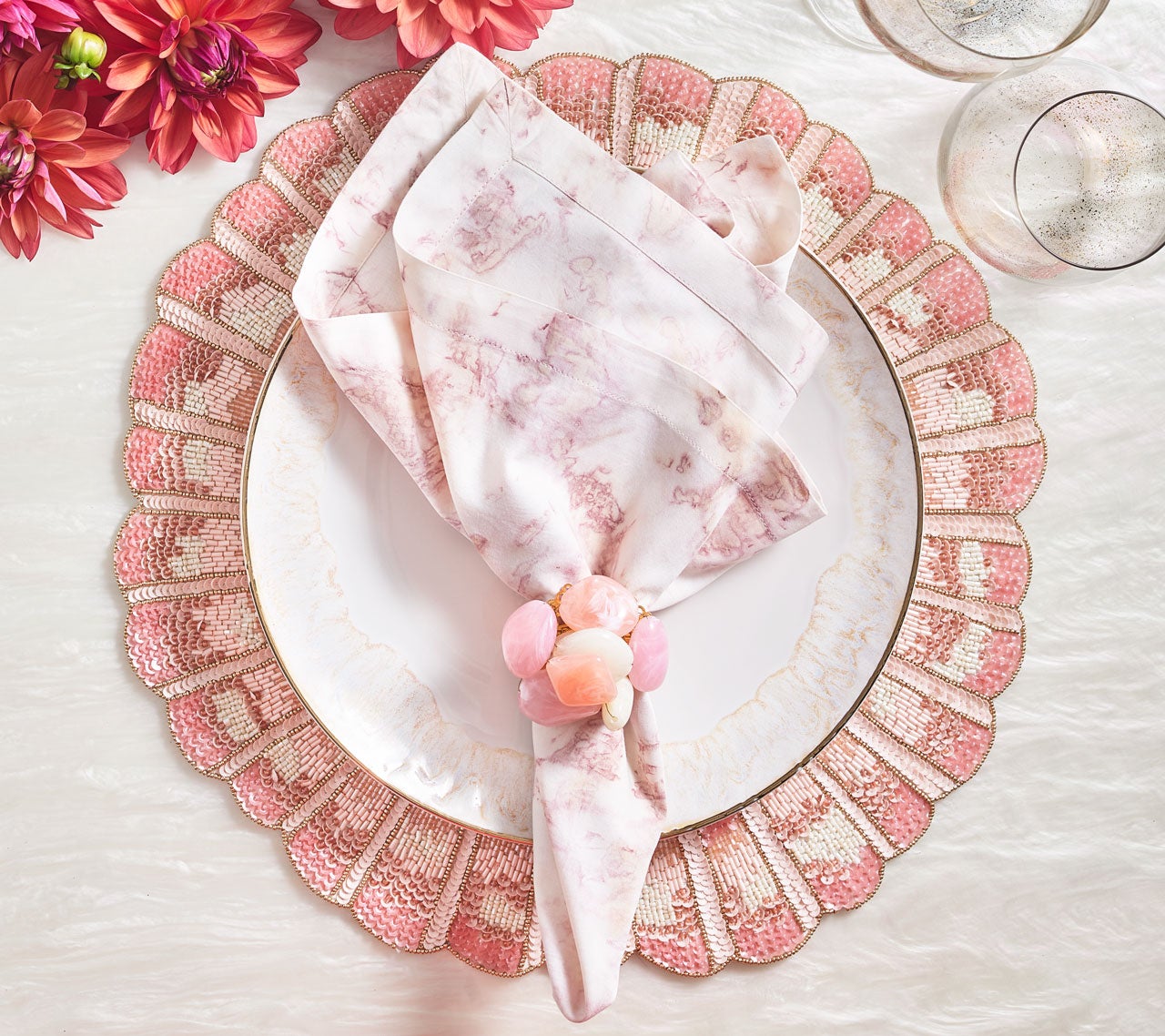Set in clusters, the white resin stones of the Sea Stone Napkin Ring resemble the tumbled rocks found on coastal shores. The stones are artfully arranged at random and set on a beaded napkin ring that brings out the beauty of the larger rocks. This set of four white napkin rings brightens up any dining table.