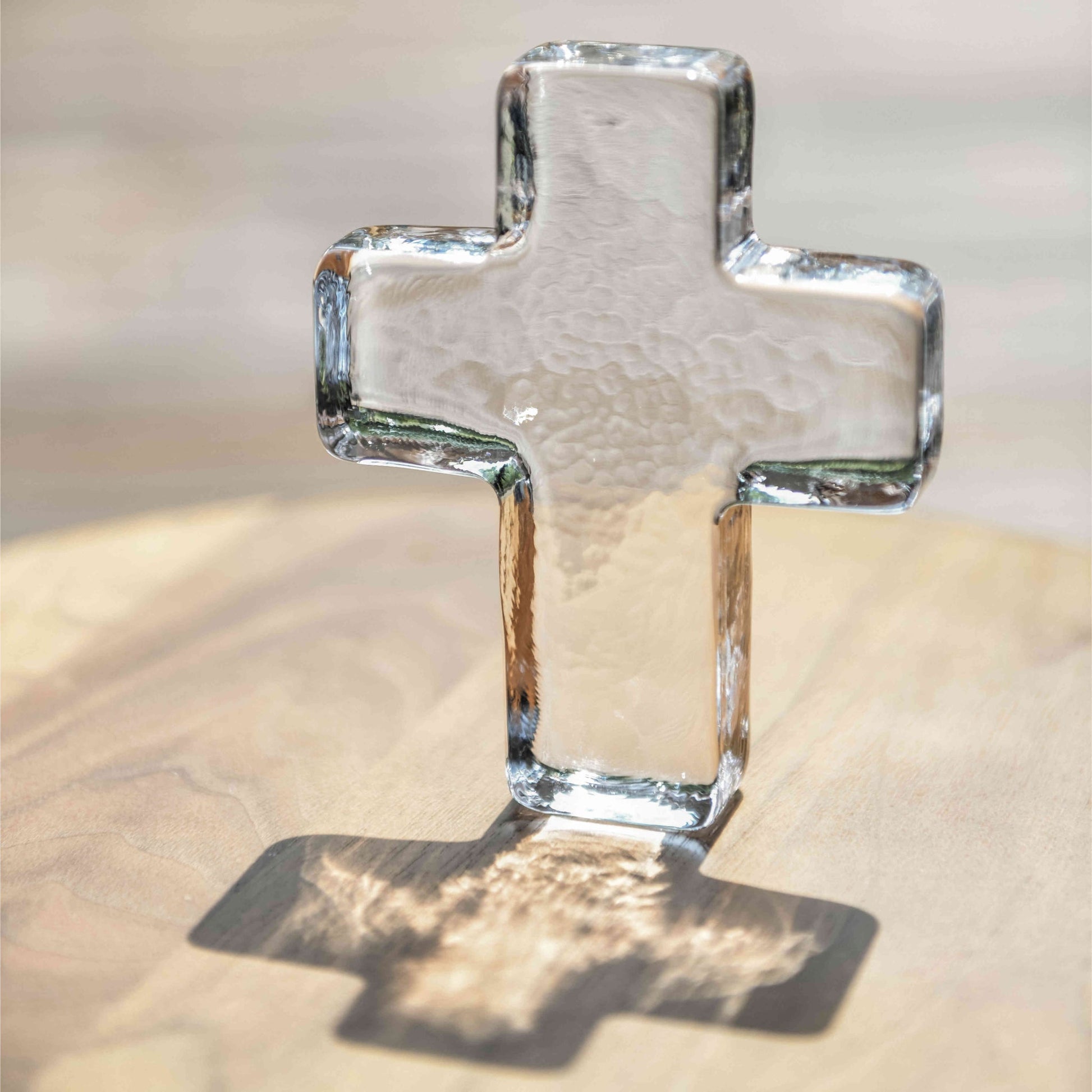 A timeless symbol of faith and hope, this handblown glass Cross shines with clarity and intention. Its clean lines and angled design beautifully refract light, while the substantial weight adds a sense of presence and reverence. A meaningful gift for milestones, holidays, or quiet reflection.