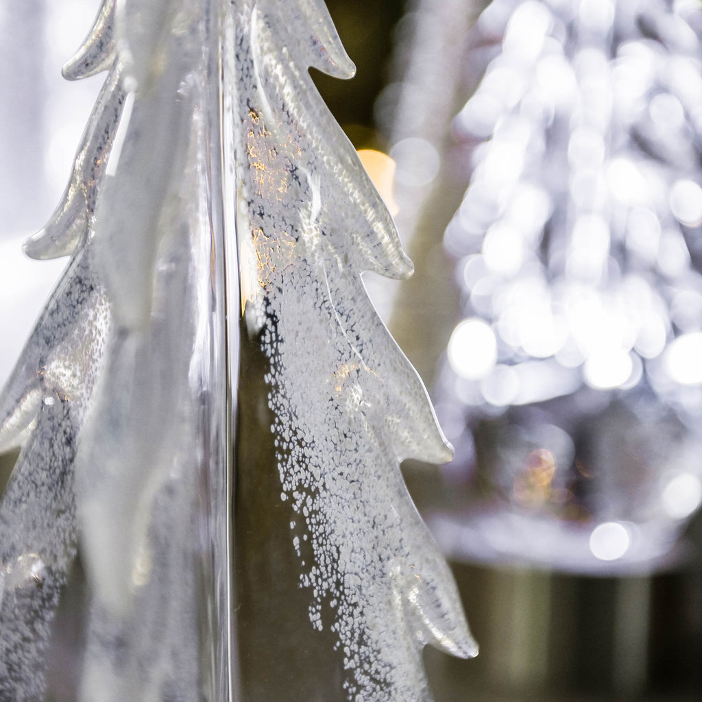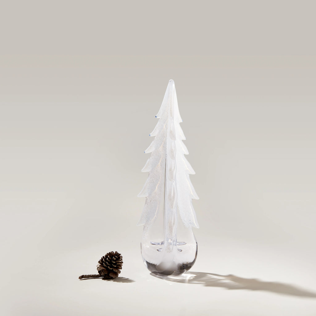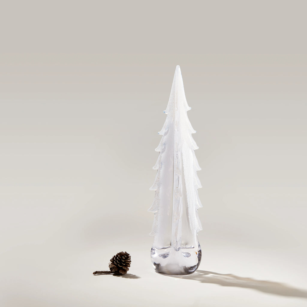 Crafted with both beauty and craftsmanship in mind, the Snowy Branches Evergreen Glass Tree is as meaningful today as the winters it evokes.