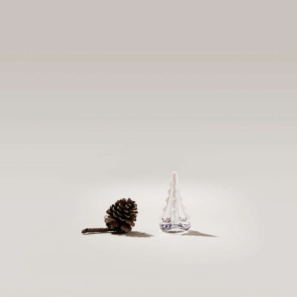 In homage to the romance of Vermont’s winter woods, the Snowy Branches Evergreen features molten glass branches individually carved and lightly dusted with powdery white sand. Air bubbles play throughout the glass for a subtly textured, snow-kissed finish that brings artisanal charm and serene elegance to any décor. Packaged in a beautiful gift box, it makes a timeless and thoughtful accent for the holidays—or any day.