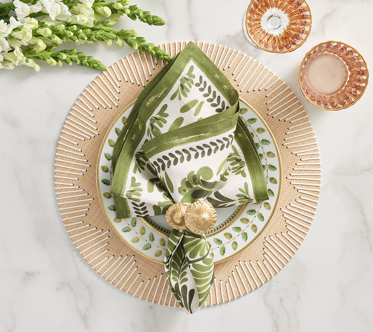 Add rustic charm to your fall table with the Sprout Napkin Ring. Delicate metal mushrooms sprout from the carved wooden base. Each mushroom cap is finished in gold plating, enhancing the natural appeal of this woodland-inspired design. Whether for casual dinners or grand celebrations, the Sprout Napkin Ring effortlessly introduces a refined organic element to any setting.