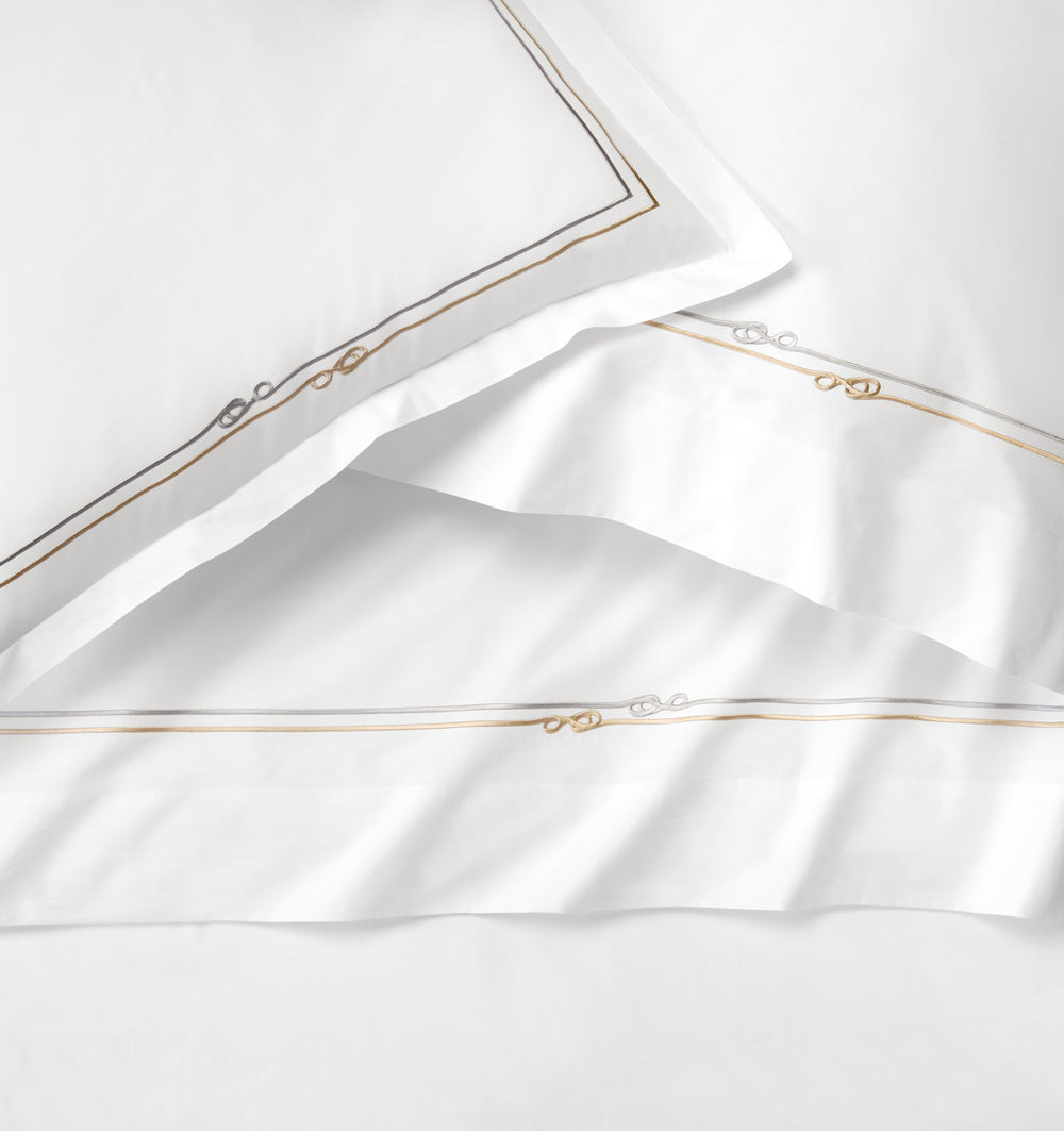 Two lines of grey and taupe form whimsical loops that dance around Squillo's pristinely tailored edges. The coordinating Punti features brushed-on dots in matching shades of grey and taupe to create an all-over pattern on the collection's soft, breathable percale base. Together, the collections add a playful modernity to the classic polkadot, elevating the bedroom while infusing it with a subdued sprightliness.
