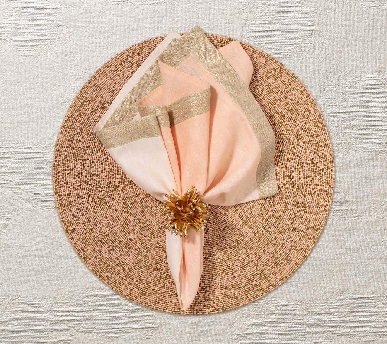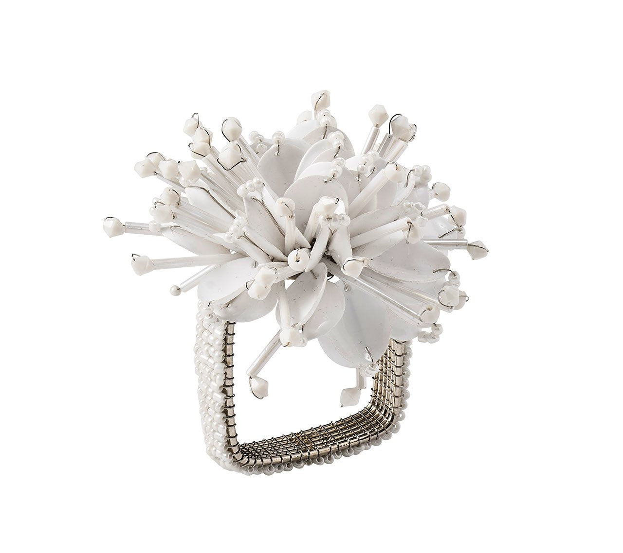 The Starburst Napkin Ring is inspired by the brilliant point of light emitted by the burst of a supernova. These radiant gold beaded napkin rings effortlessly lighten and brighten a table. These glistening metallic gold napkin rings will add a spark to any table.