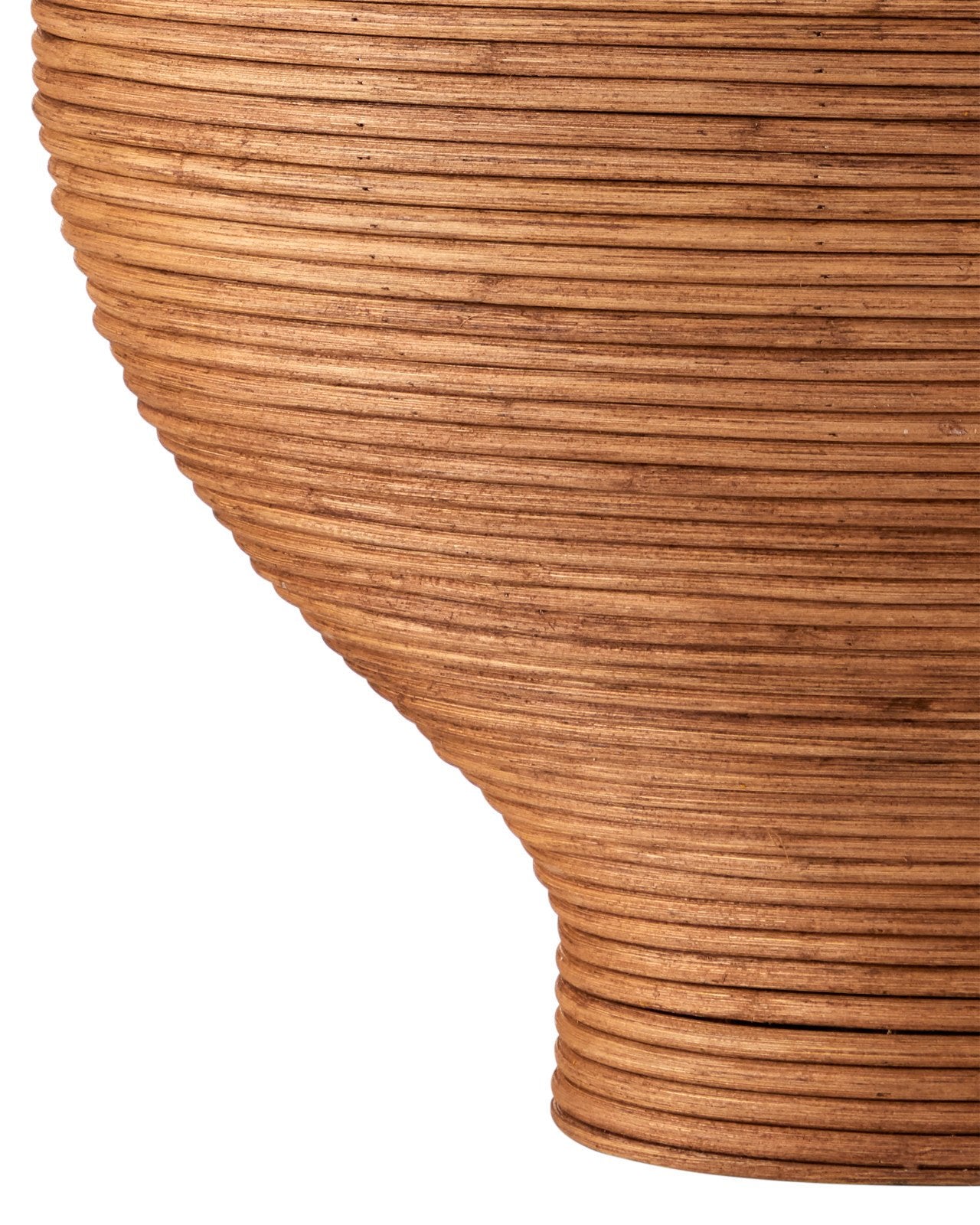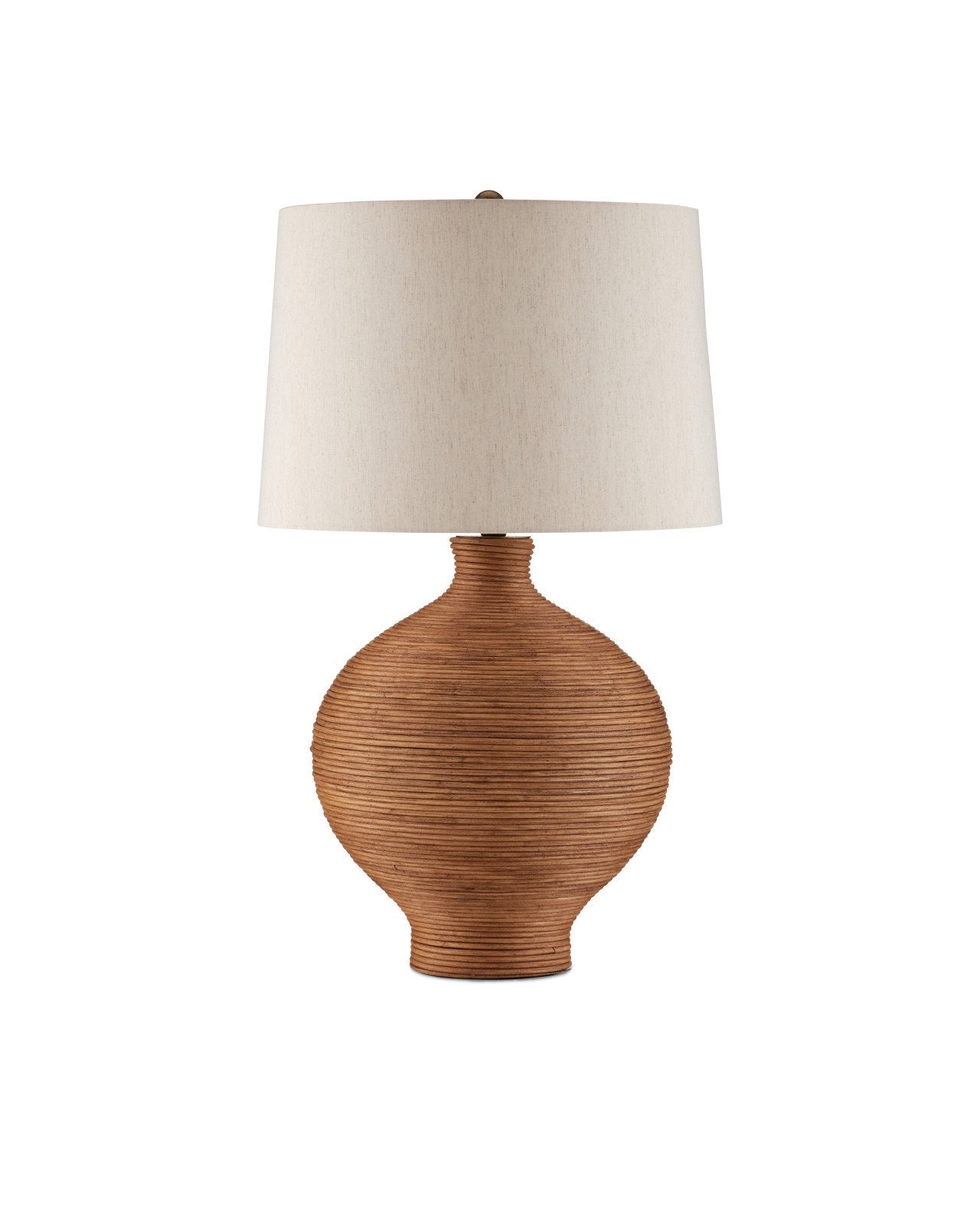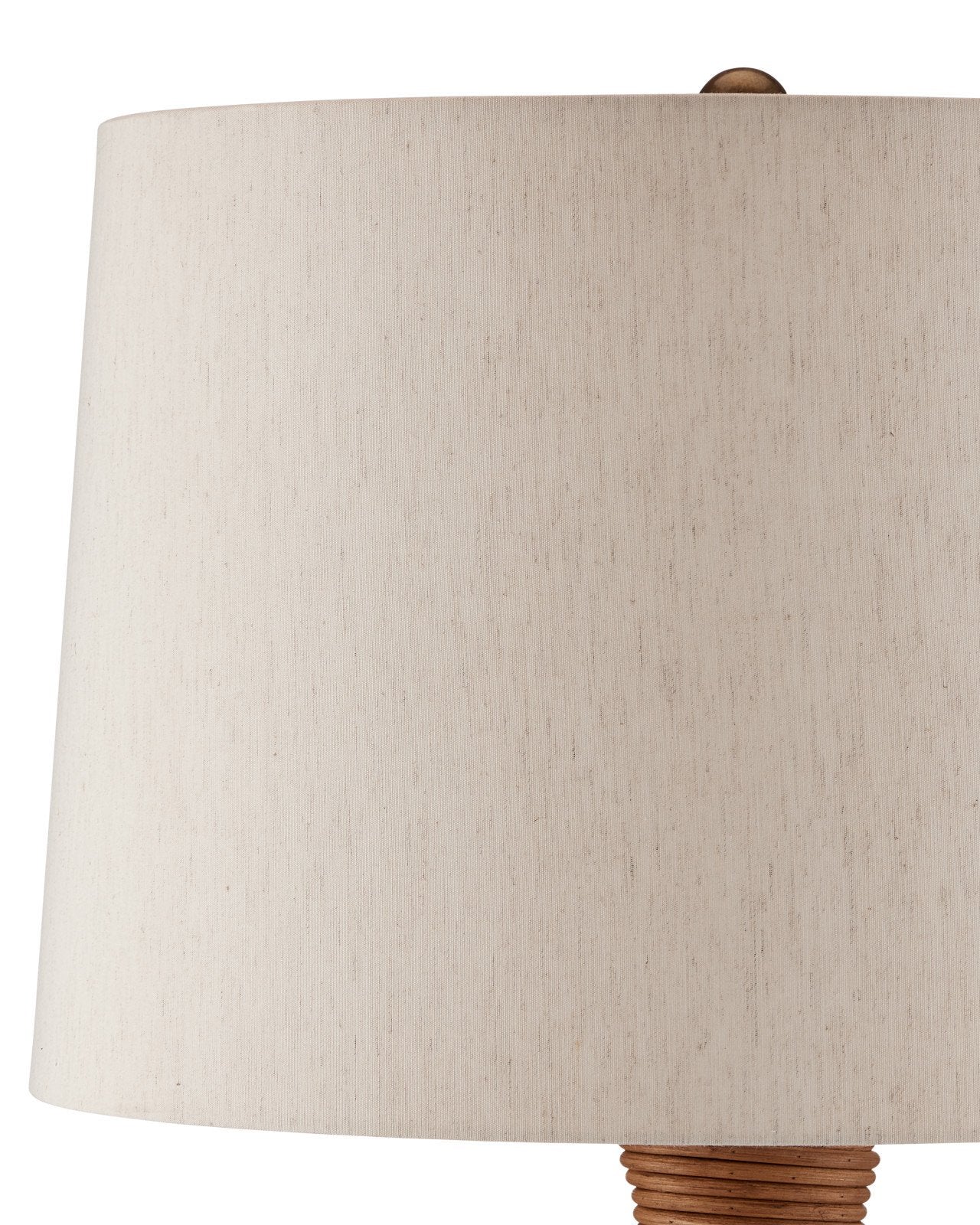 Bring handcrafted warmth and sculptural beauty into any space with the Susel Table Lamp. Each piece is meticulously wrapped by artisans who take strips of skinless rattan and seamlessly wind them around a modernized ginger-jar silhouette—a process that requires remarkable precision to achieve its smooth, linear texture. The natural rattan body pairs effortlessly with a nubby linen shade and refined antique brass hardware, creating a soft, ambient glow that feels both organic and elevated.