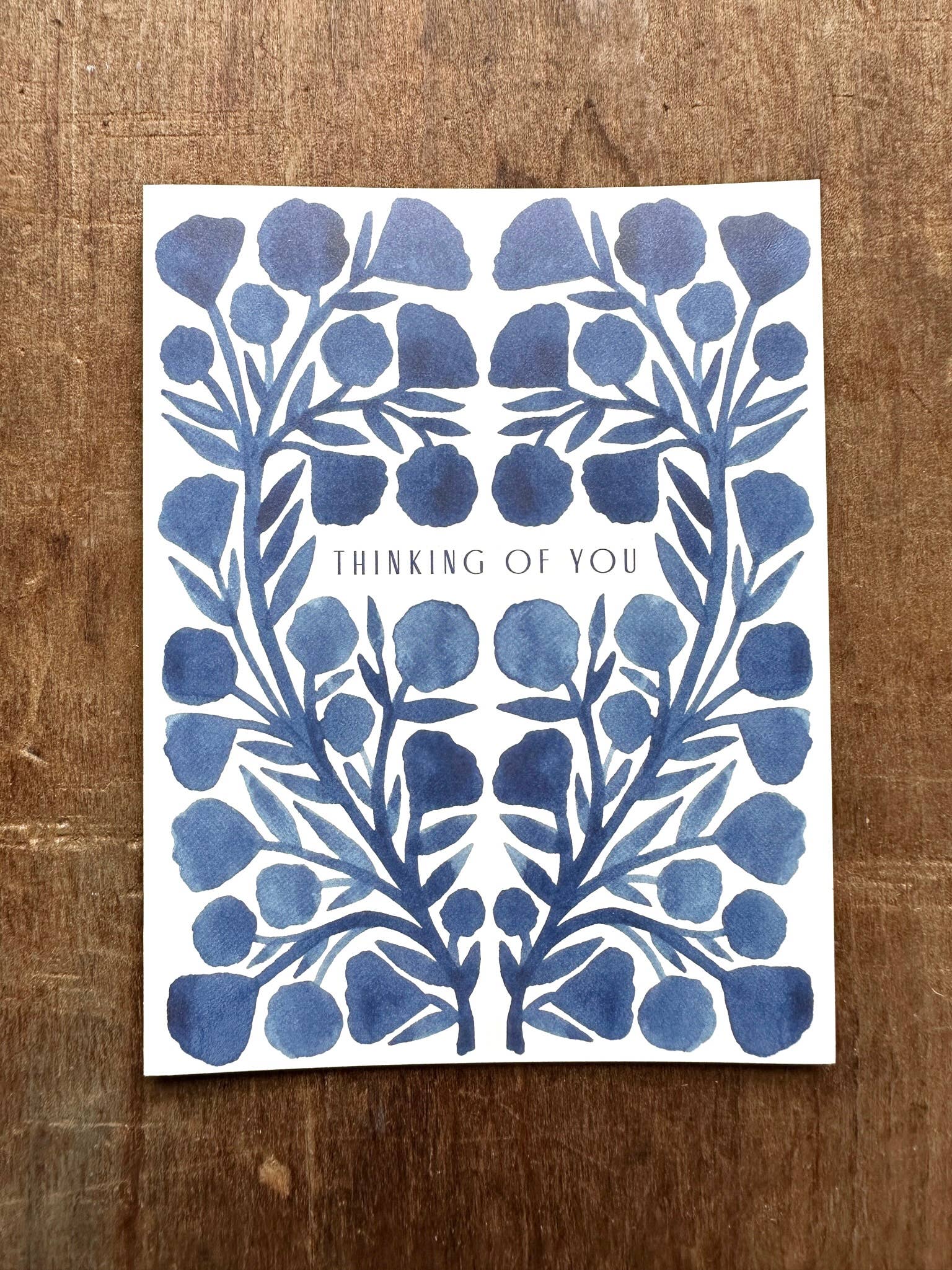 A Katharine Watson offset printed card, printed in Maine on 100lb cardstock. Each card is a standard A2 size, 5 ½” by 4 ¼”, is blank on the inside, and comes with a 100% recycled kraft envelope. Katharine begins each greeting card design with a sketch, watercolor painting or hand-carved linoleum block, which is digitally translated and later, individually printed.