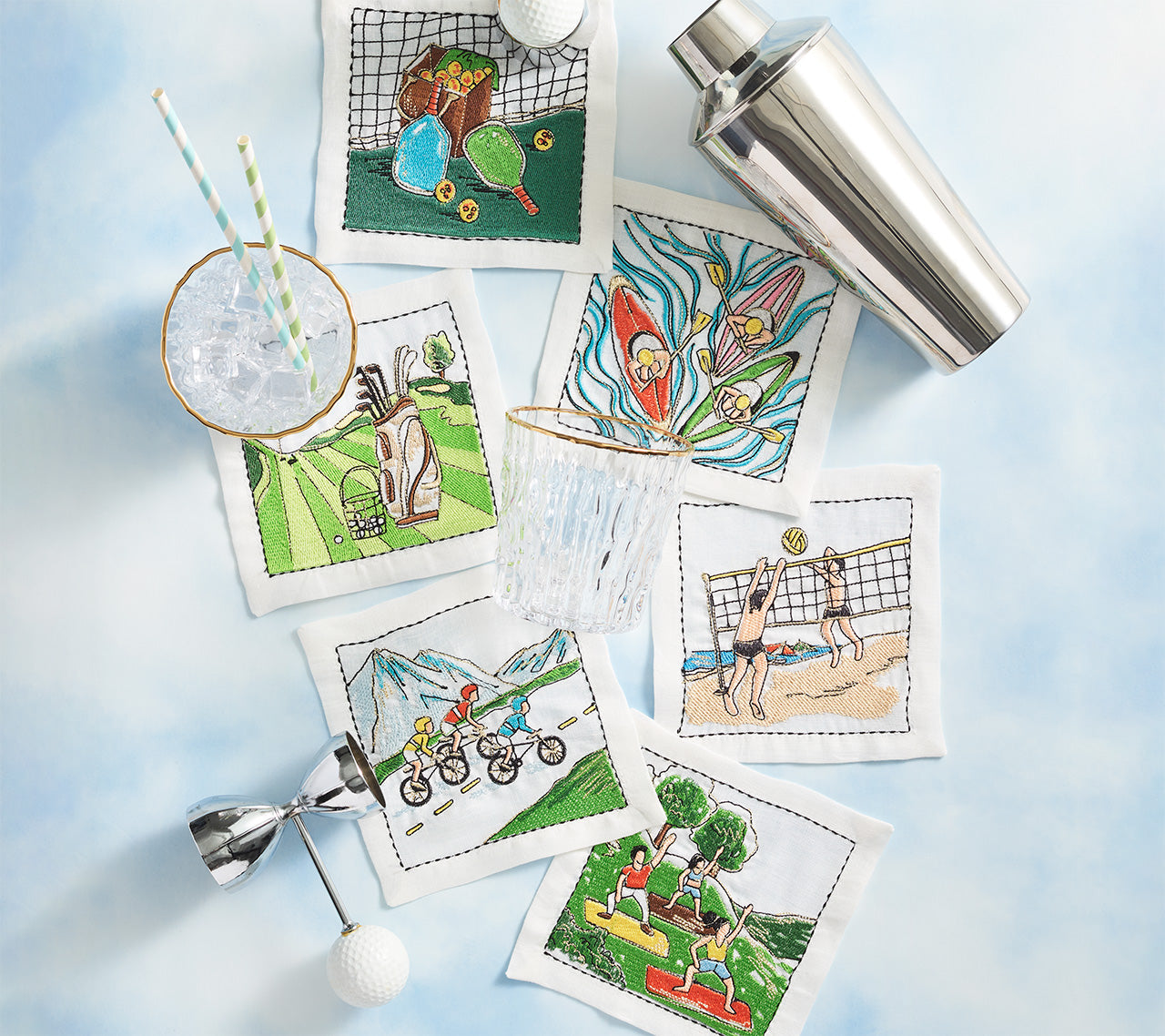 The Venture Cocktail Napkins are game-changers for any gathering. Made from fine linen, each napkin features vivid, hand-embroidered motifs celebrating classic outdoor sports—from golf to croquet—infusing your table with playful energy and refined charm. Whether you’re hosting a garden party, après-sport soirée, or weekend brunch, these napkins turn every event into an adventure.