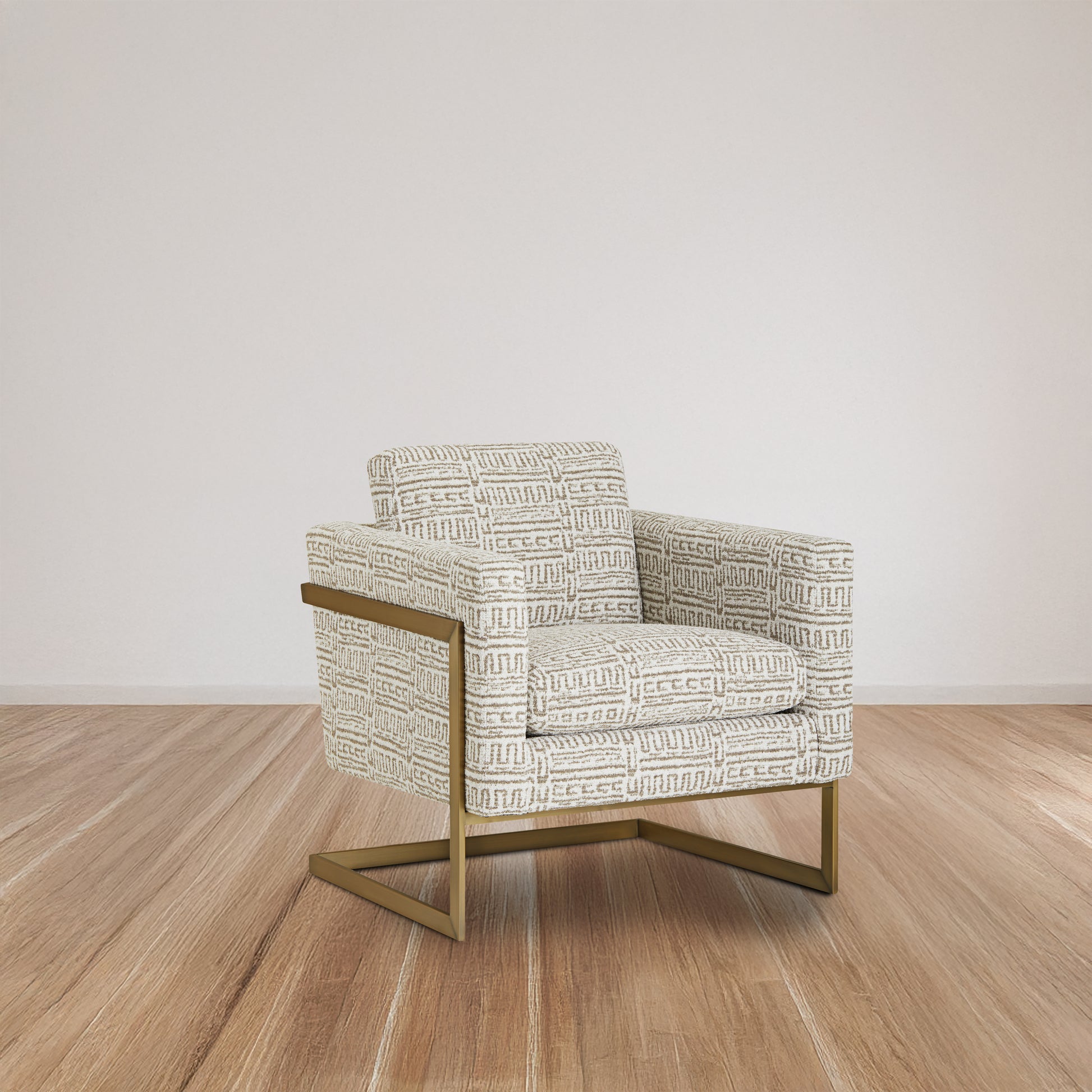 Relaxed and functional, the Vincente Chair is the perfect complement to the Vincente seating collection. Designed with refined topstitching, a plush poly down back, and a NaturalLEE cushion, this piece is elevated by its striking antiqued brass frame for a modern yet timeless look.