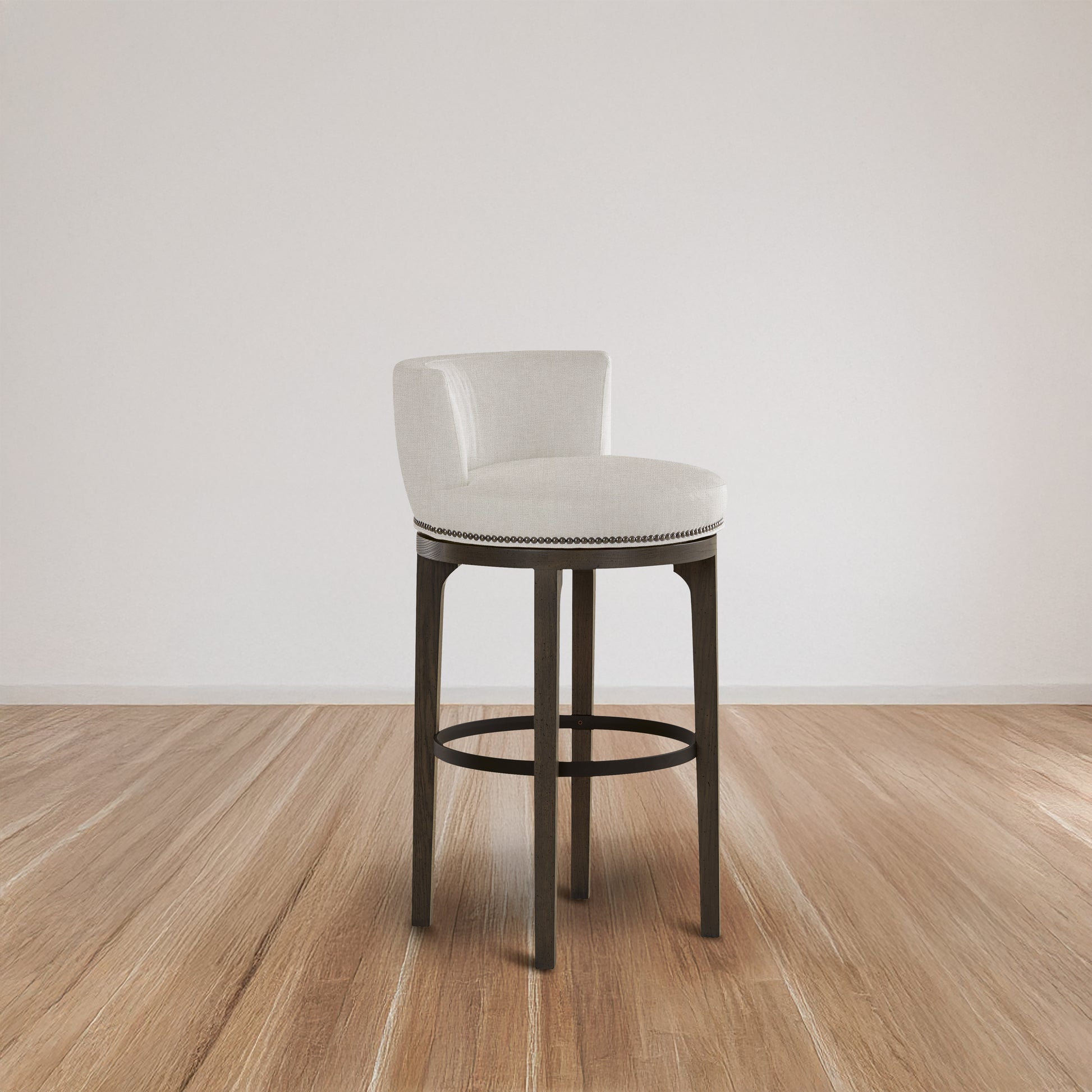 Relaxed and functional, the Whitfield Swivel Bar Stool is the perfect complement to the Whitfield seating collection. Designed with French seams on the seat and inback borders, small nail head trim, an oil-rubbed bronze metal ring, and an oak base, it blends tailored elegance with everyday comfort.