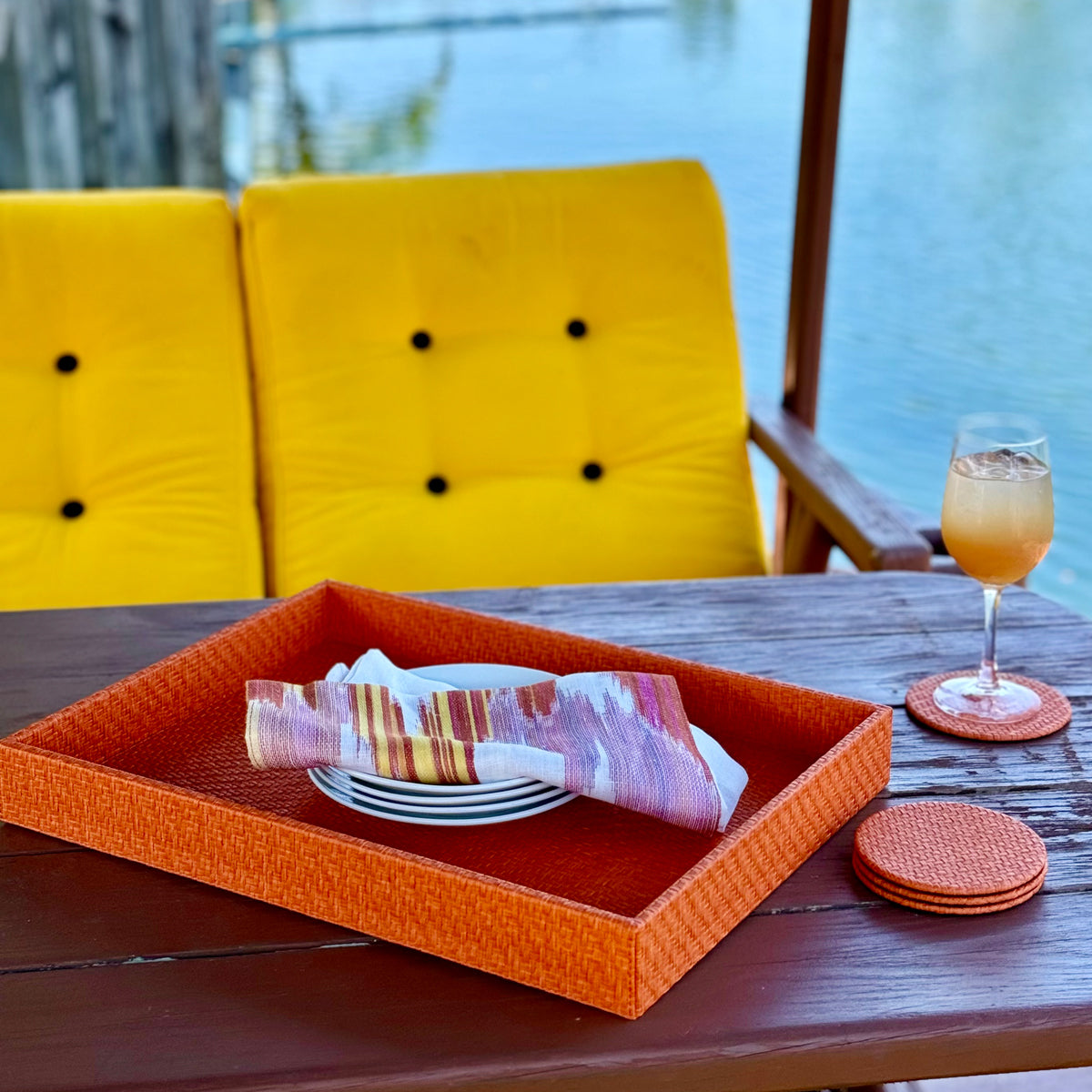 Whether serving drinks, presenting appetizers, or styling your space, the Wicker Trays add a refined yet casual elegance to any setting.