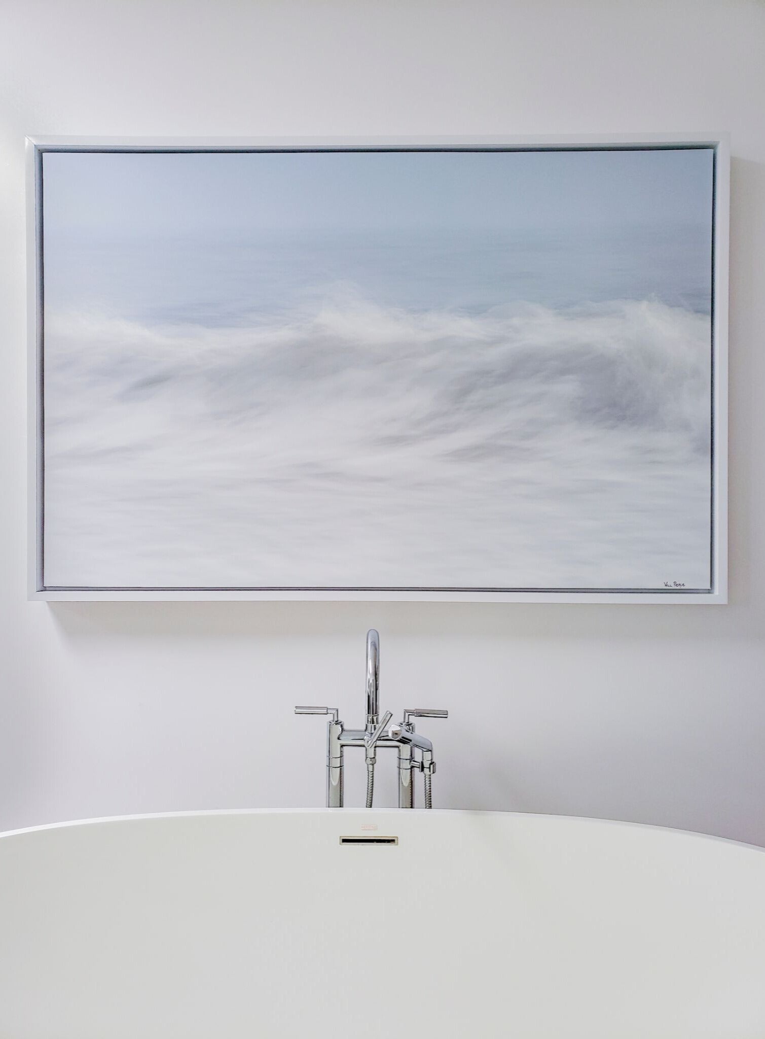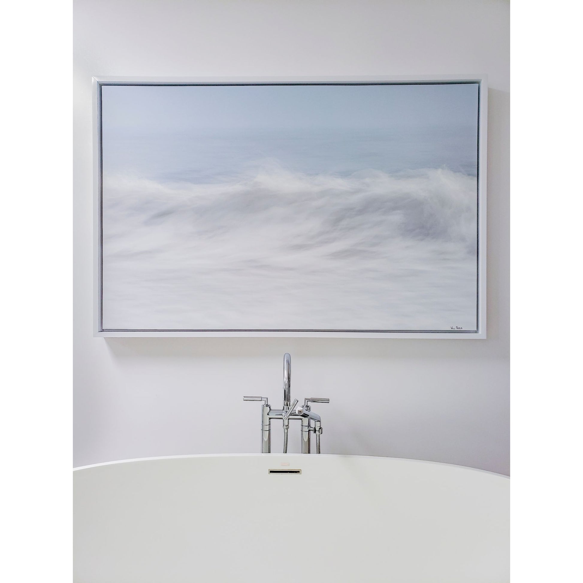 Each piece is made to order (8-12 weeks) and available in custom sizes, with the option to preview it on your wall before purchase. All artwork comes with a custom wood frame.